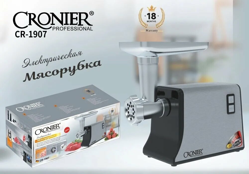 Мясорубка электрическая "CRONIER CR-1907" универсальная с насадками / Электрическая мясорубка 2800 ВТ интересное: