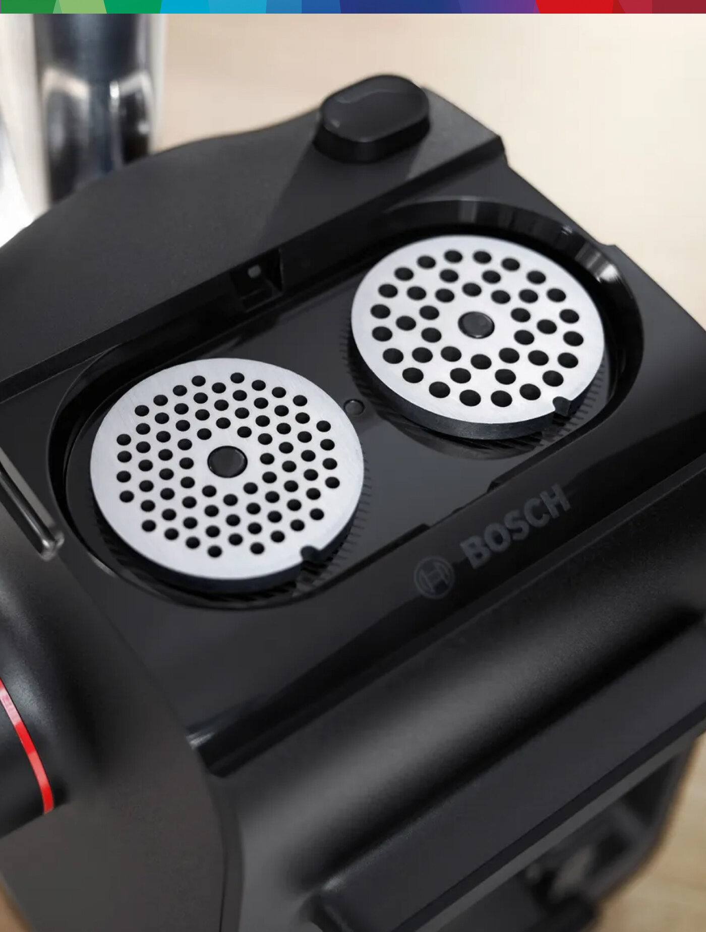 Мясорубка Bosch MFWS440B Serie 4 MultiPower, 1900 вт, 7 насадок, реверс, 2 скорости, насадка для фарша, черный интересное: