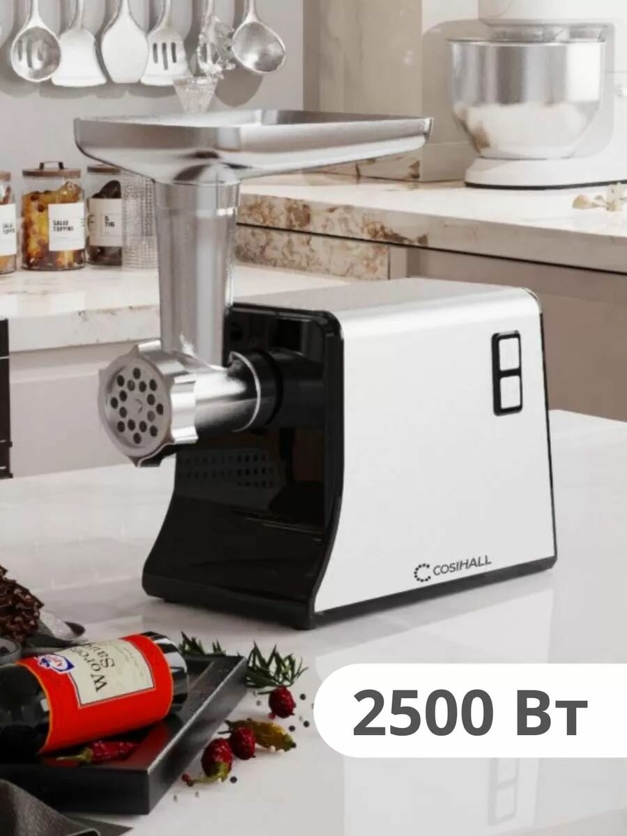 Электрическая мясорубка COSIHALL, пластик, 2200Вт, 3 насадки, защита от перегрузки