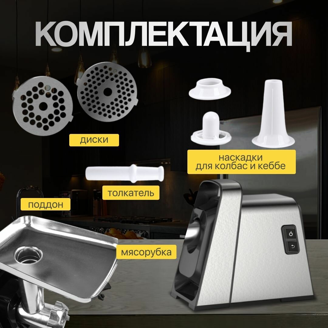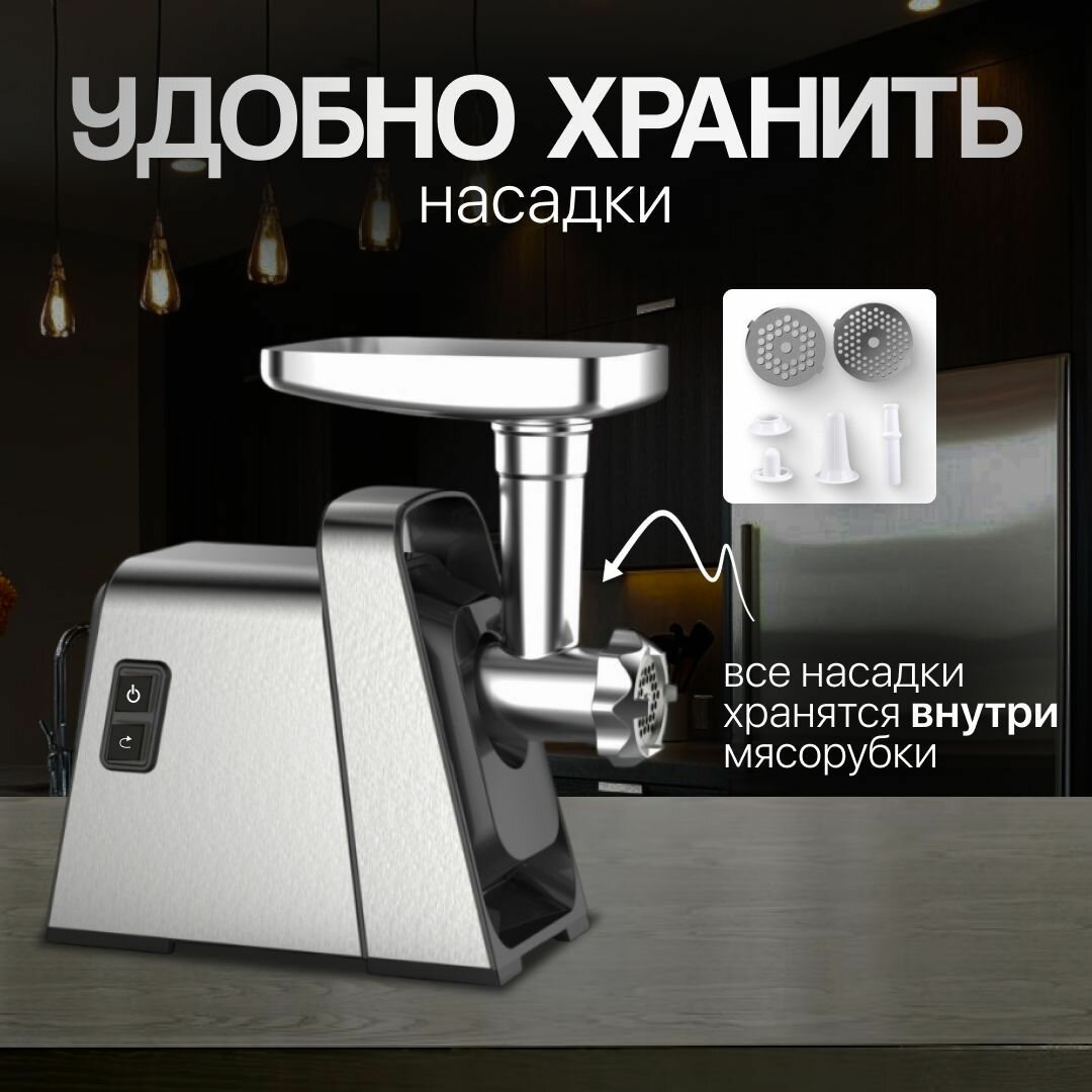 Мощная мясорубка электрическая, с насадками 7шт, Мощность 2500 Вт 8в1, 4кг в минуту. интересное: