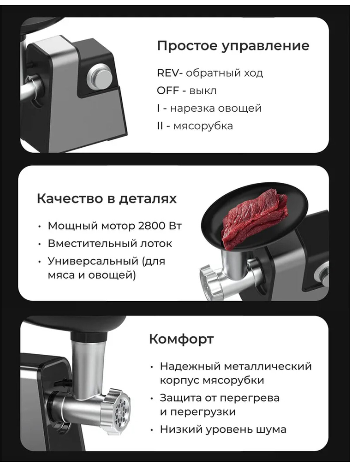 Мясорубка электрическая RUST RU-888 с насадками для овощей 10 в1, 2800 Вт интересное: