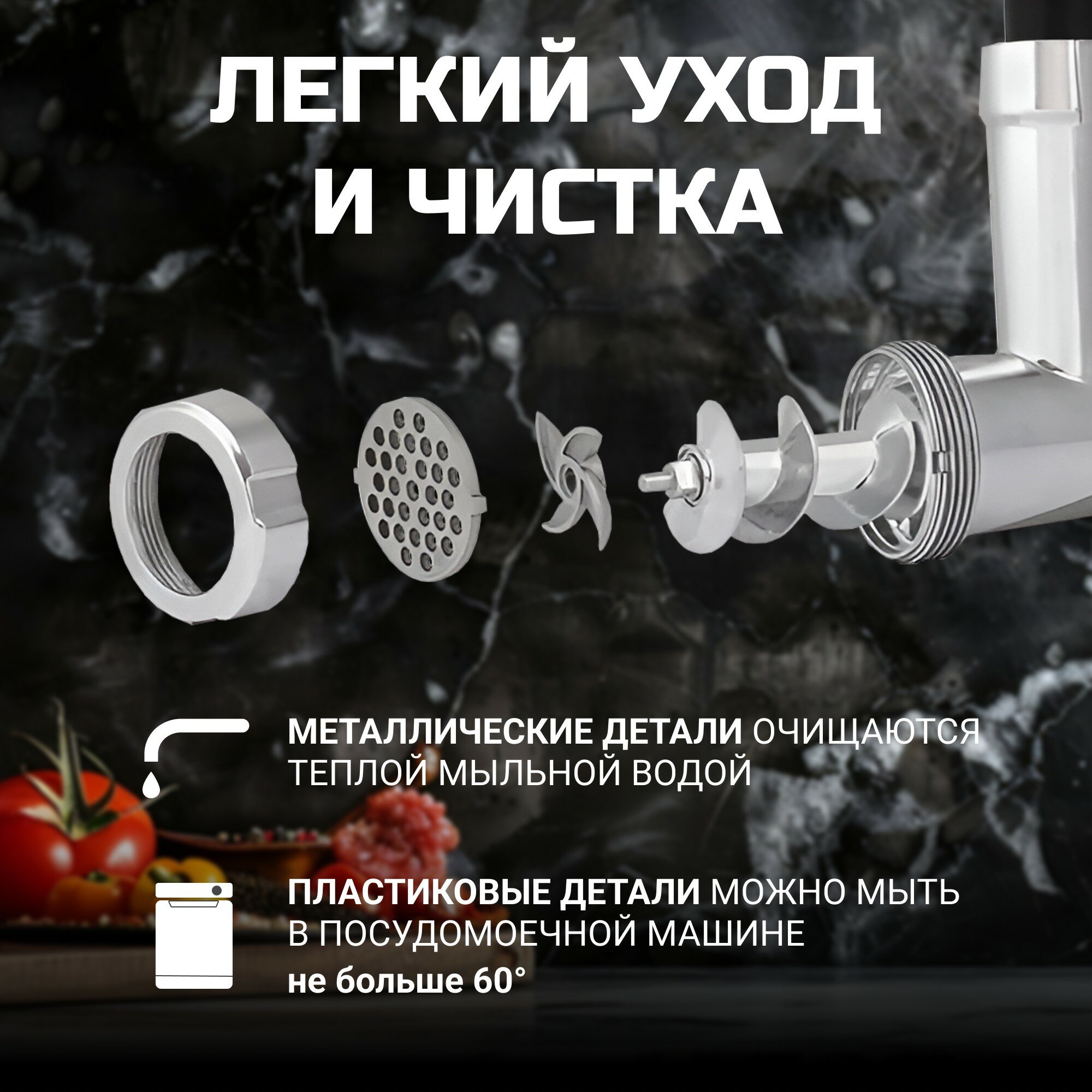 | Насадки | диск для фарша / насадка для кеббе / насадка для приготовления колбас / насадка для шинковки / насадка-терка |