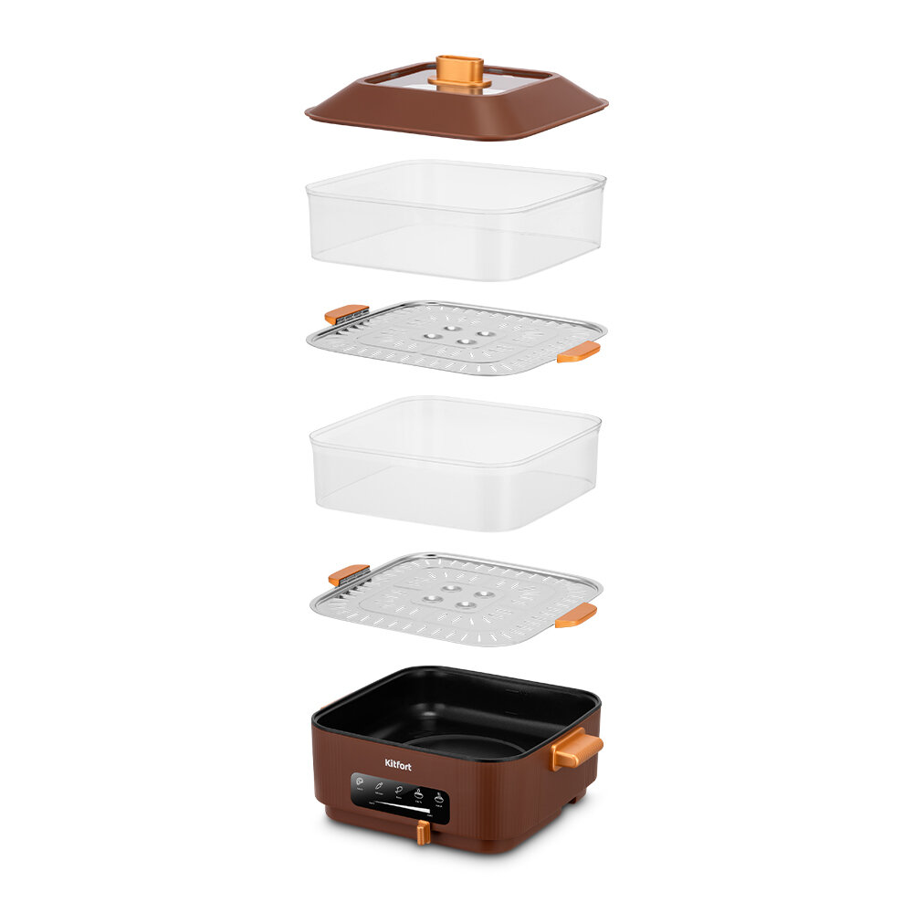 | Особенности конструкции | индикатор включения, съемные решетки, углубления для варки яиц |