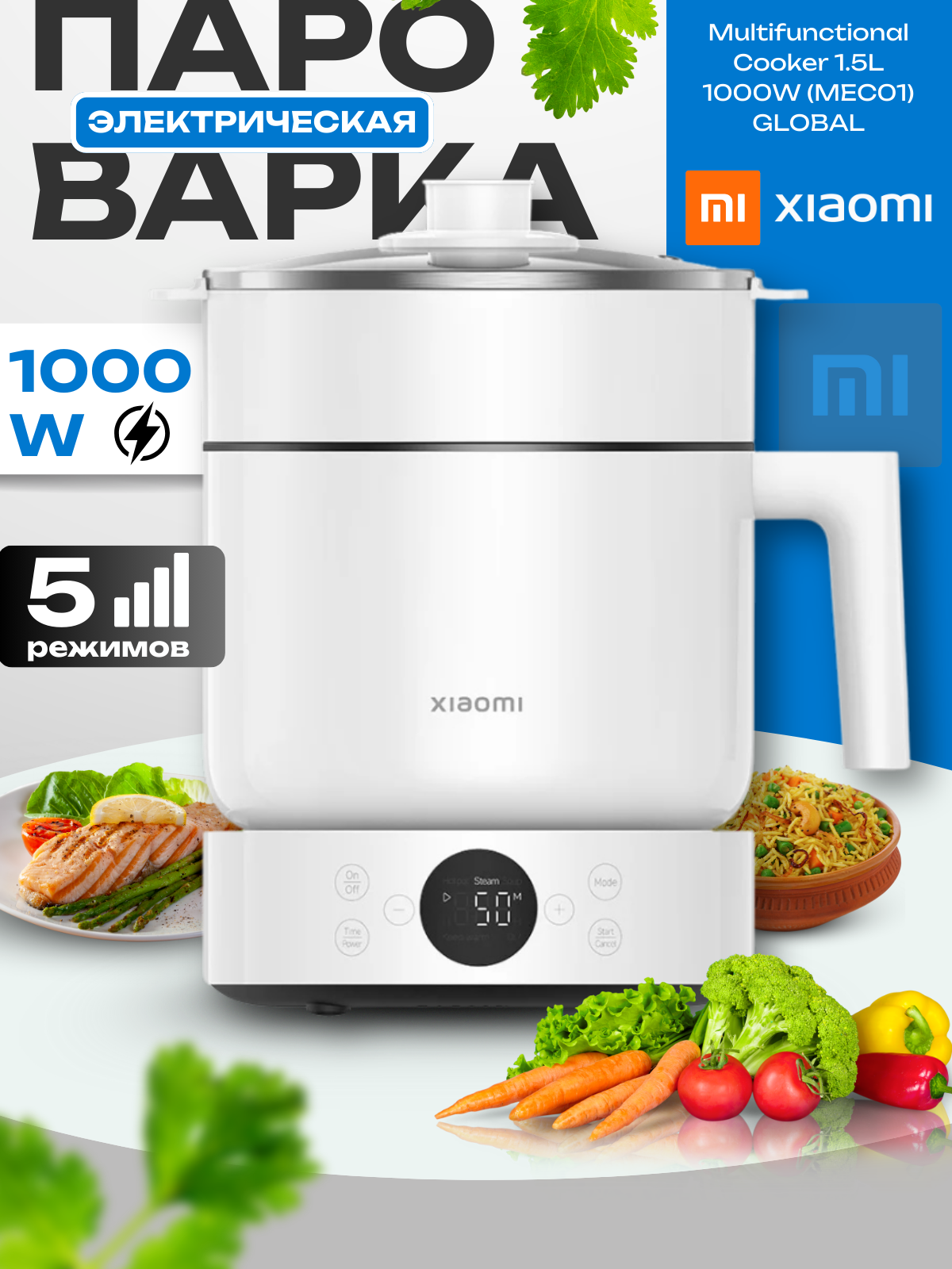 Пароварка электрическая Xiaomi Multifunctional Cooker 1.5L 1000W (MEC01) интересное: