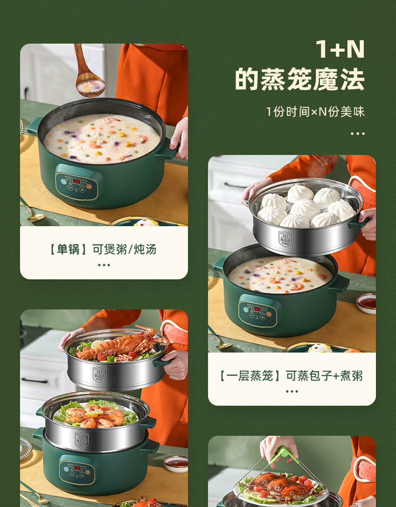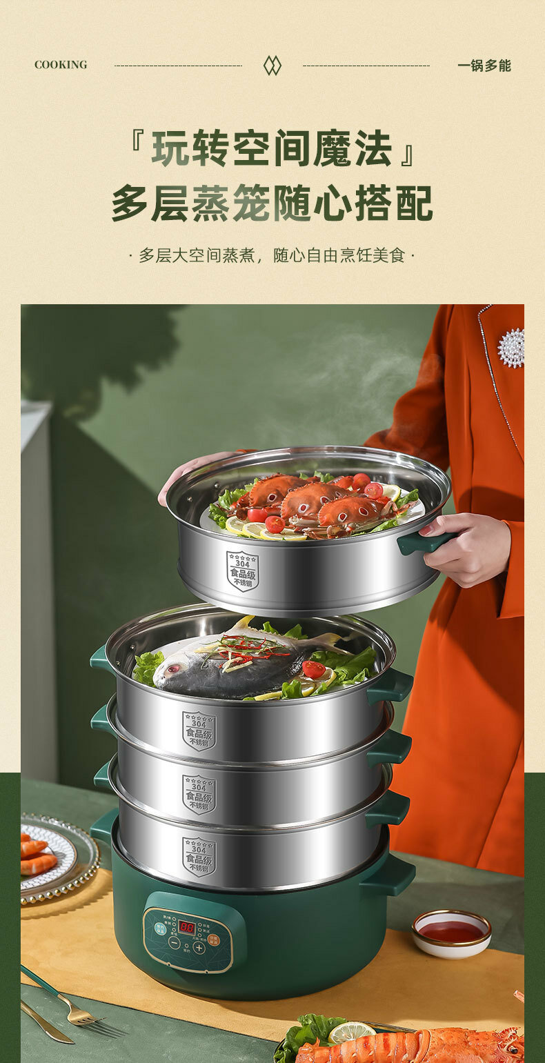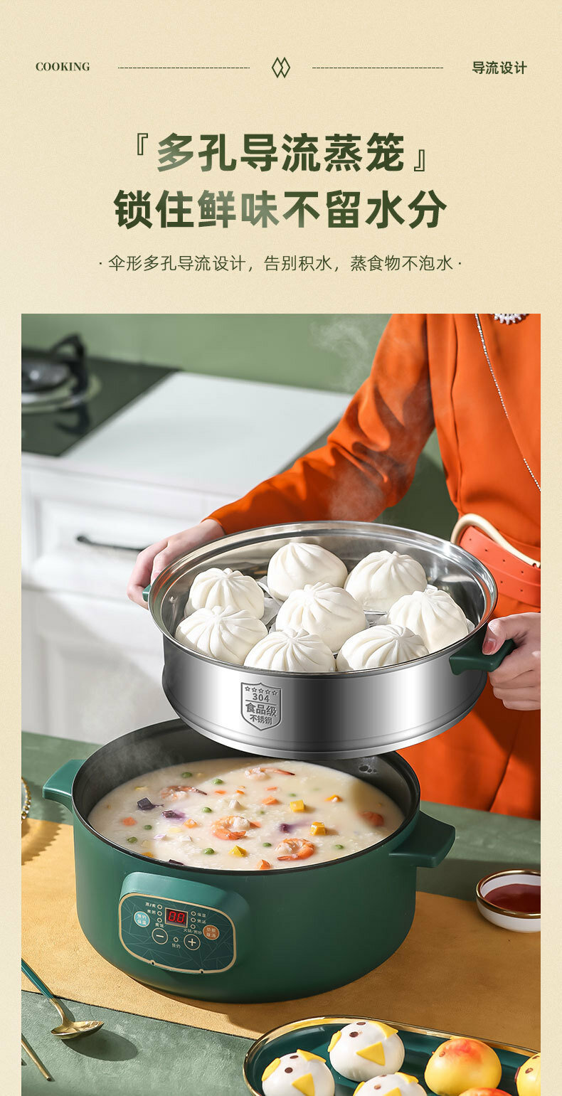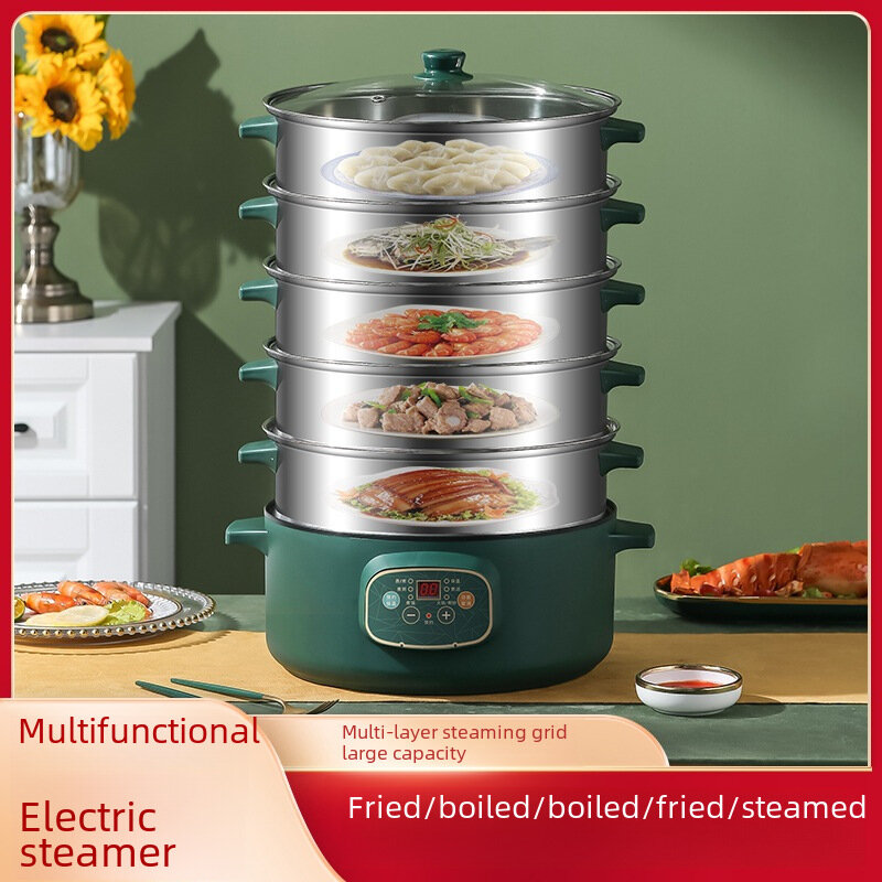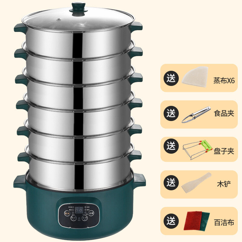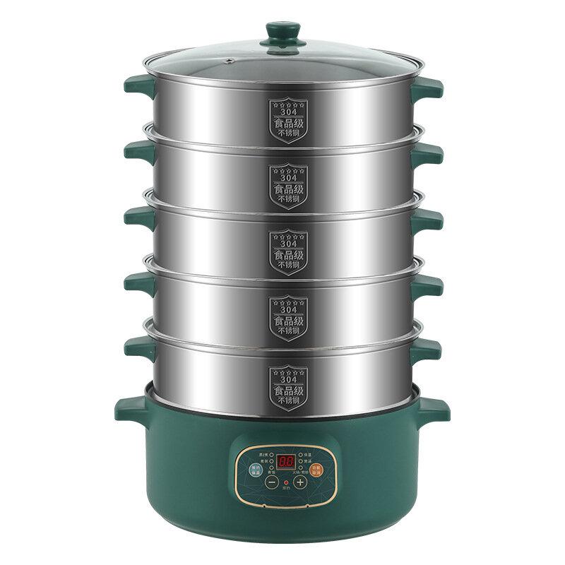 Электрическая пароварка, 304, 5 слоев, большая емкость, зеленая
