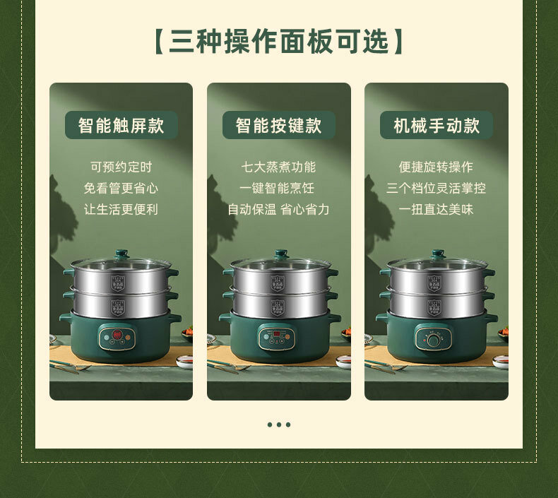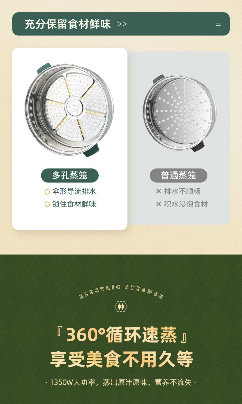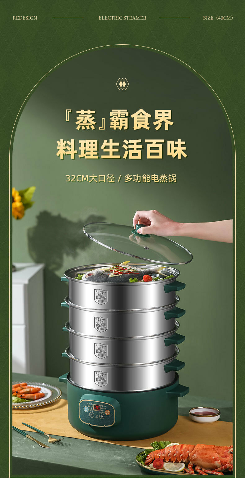 Пароварка электрическая 304, 32см, зеленая, многофункциональная, большая емкость