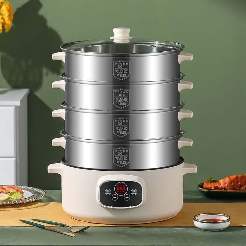 Купить Электрическая пароварка, 304, бежевая, 28см