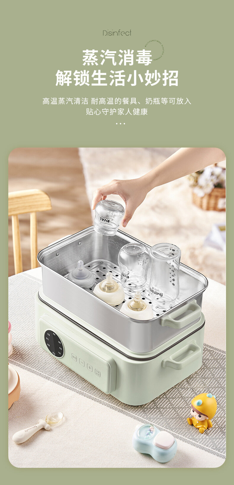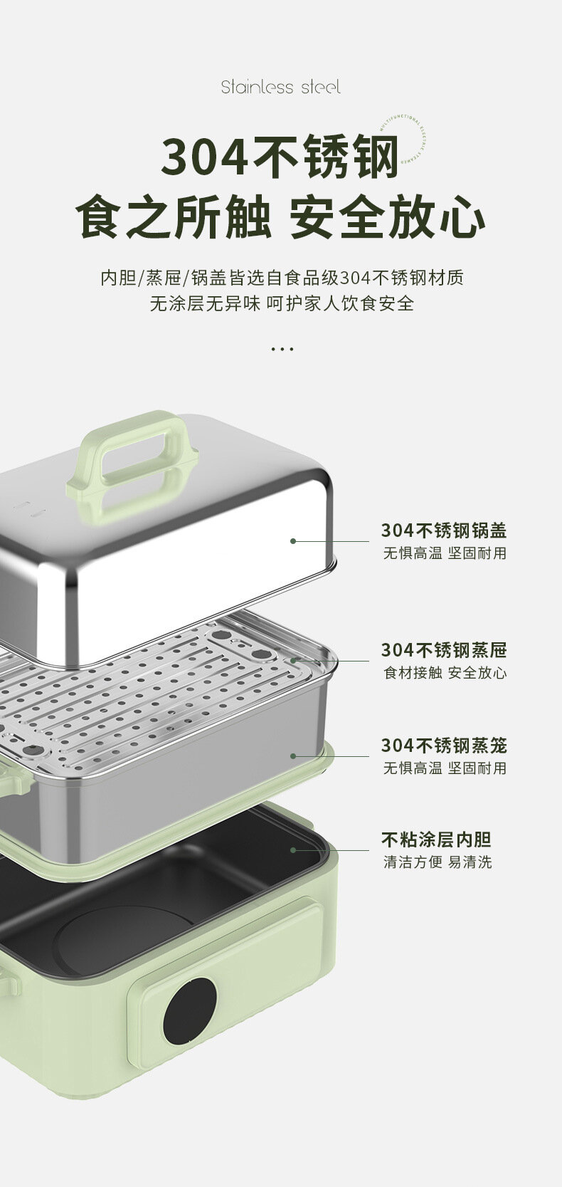 Купить Электрическая пароварка, нержавеющая сталь, двухслойная, 17 л, светло-зеленая