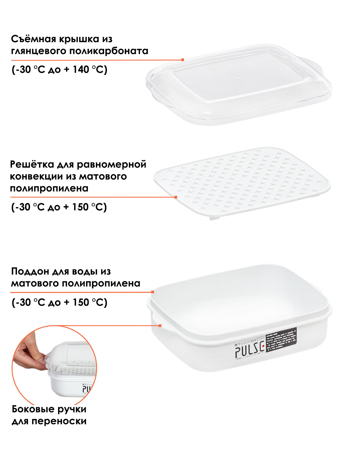 Контейнер-пароварка для СВЧ печи, 1,46 л, 23,4х16,5х6,4см