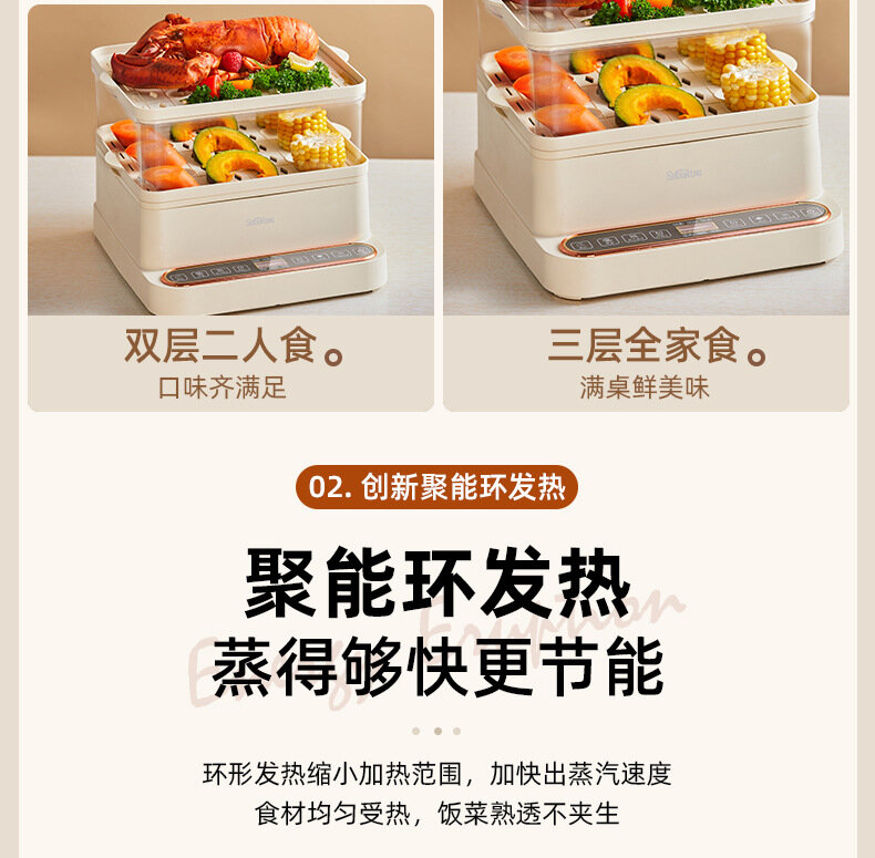 Электрическая пароварка, 2 корзины для приготовления пара, универсальная, 1000 Вт