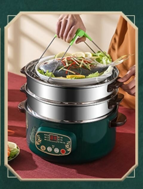 Пароварка WJIECO, 3 яруса, индукционный нагрев, пластик, зеленая/белая, 10 л интересное: