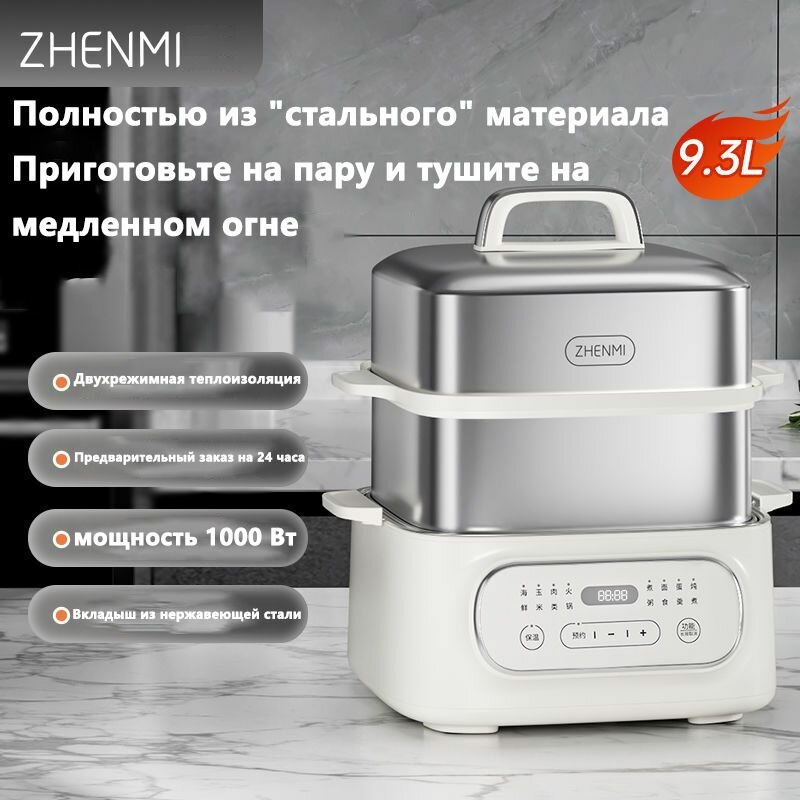 Электрическая пароварка ZHENMI, нержавеющая сталь, двухслойная пароварка, 9,3 л интересное:
