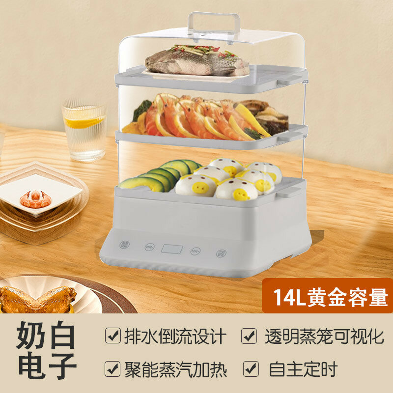 Пароварка, 3 слоя, белая, электронная, 01