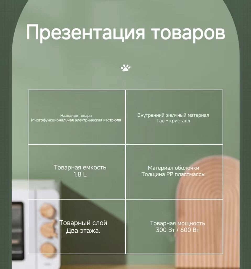| Комплектация | кастрюля - 1 шт.; крышка стеклянная - 1 шт.; пароварка - 1 шт.; кабель питания - 1 шт. |
