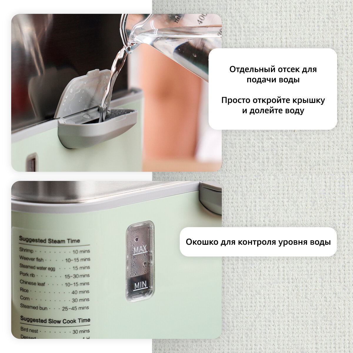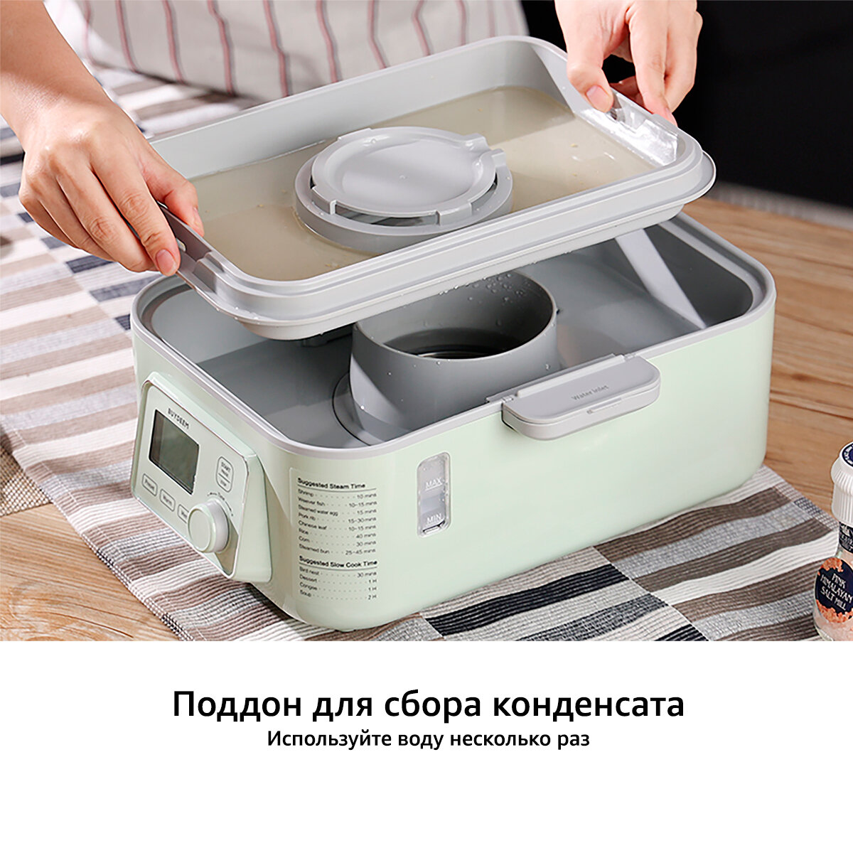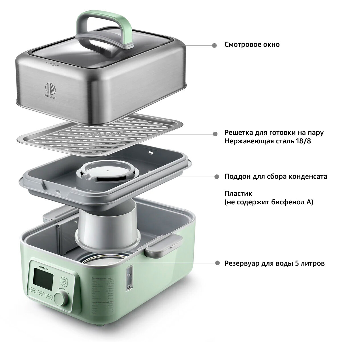 Пароварка BUYDEEM G553M электрическая с таймером, мультиварка с поддоном для конденсата и дозаливом воды интересное:
