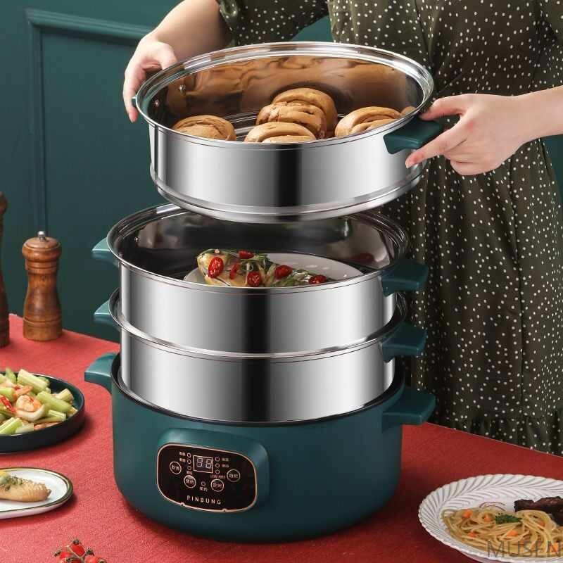 Купить Пароварка "Время встречи", нержавеющая сталь, 8л, 3 паровых корзины, индукционный нагрев,28,42, the electronic list, the power indicator list,150, Регулировка температуры, timer, Поддержание температуры