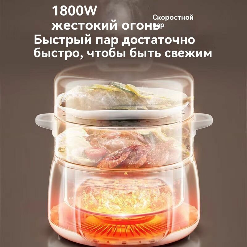 Пароварка электрическая , 18л, 2 яруса, 1500 Вт, таймер, Быстрый нагрев, легко моется, множество функций-Праздничные подарки