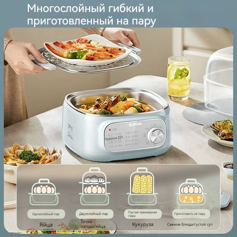 Электрическая пароварка SUPOR, чаша для риса, 8 программ, таймер, 1000 Вт интересное: