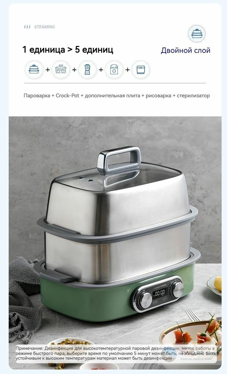 | Комплектация | 1*Хост 2 * пароварка 1 * Подставка для тушеного мяса (включая две миски) 1 * Суповая тарелка 1* Решетка для приготовления на пару |