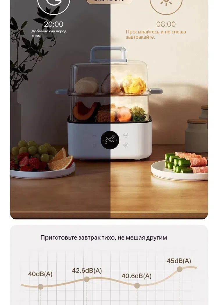 Пароварка Xiaomi, 2 яруса, белая, автоотключение, медленноварка, часы интересное: