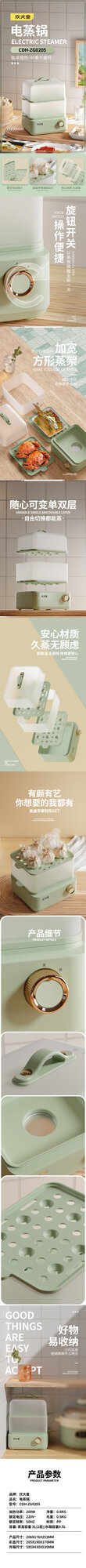 Электрическая пароварка, 2 корзины для приготовления пара, универсальная, 1000 Вт