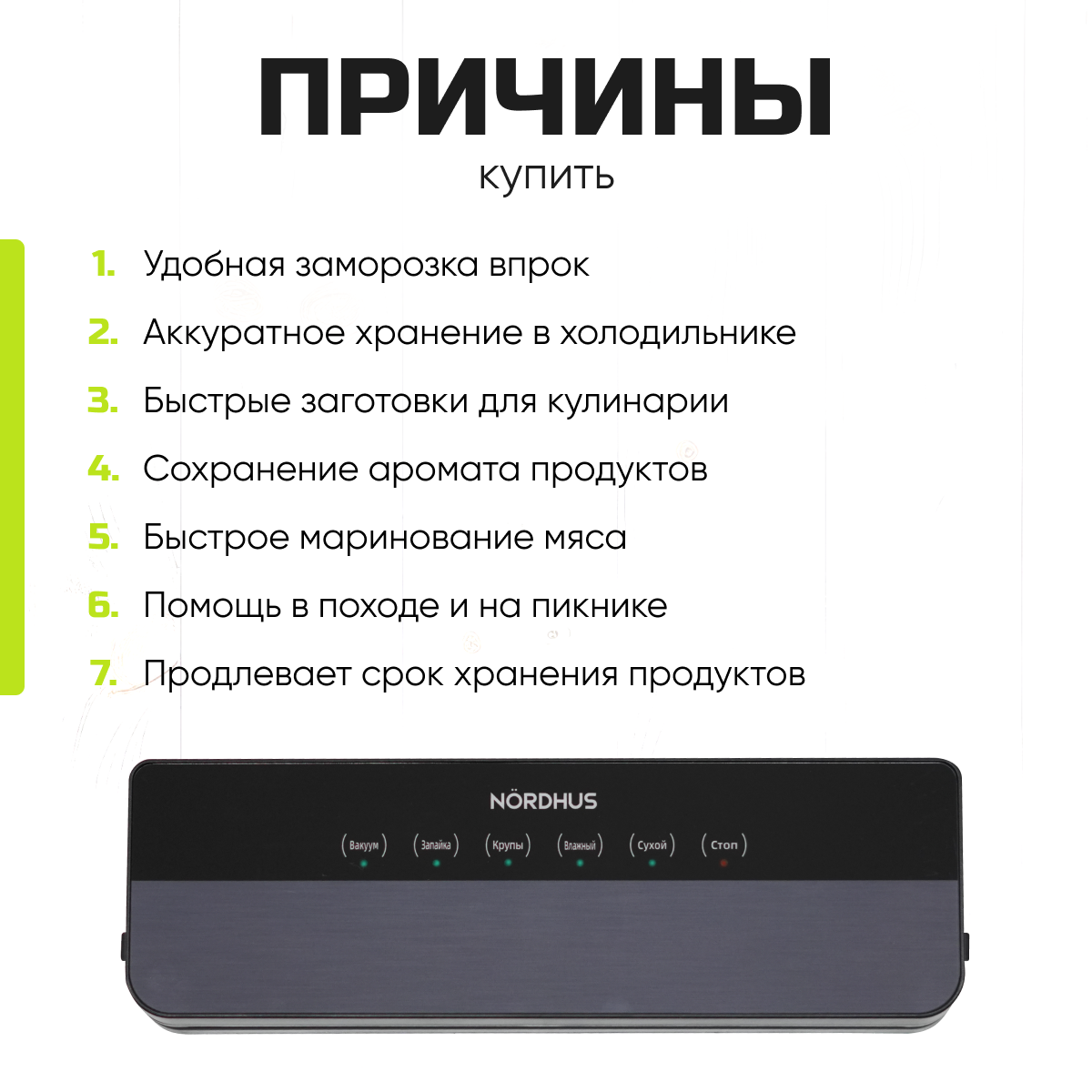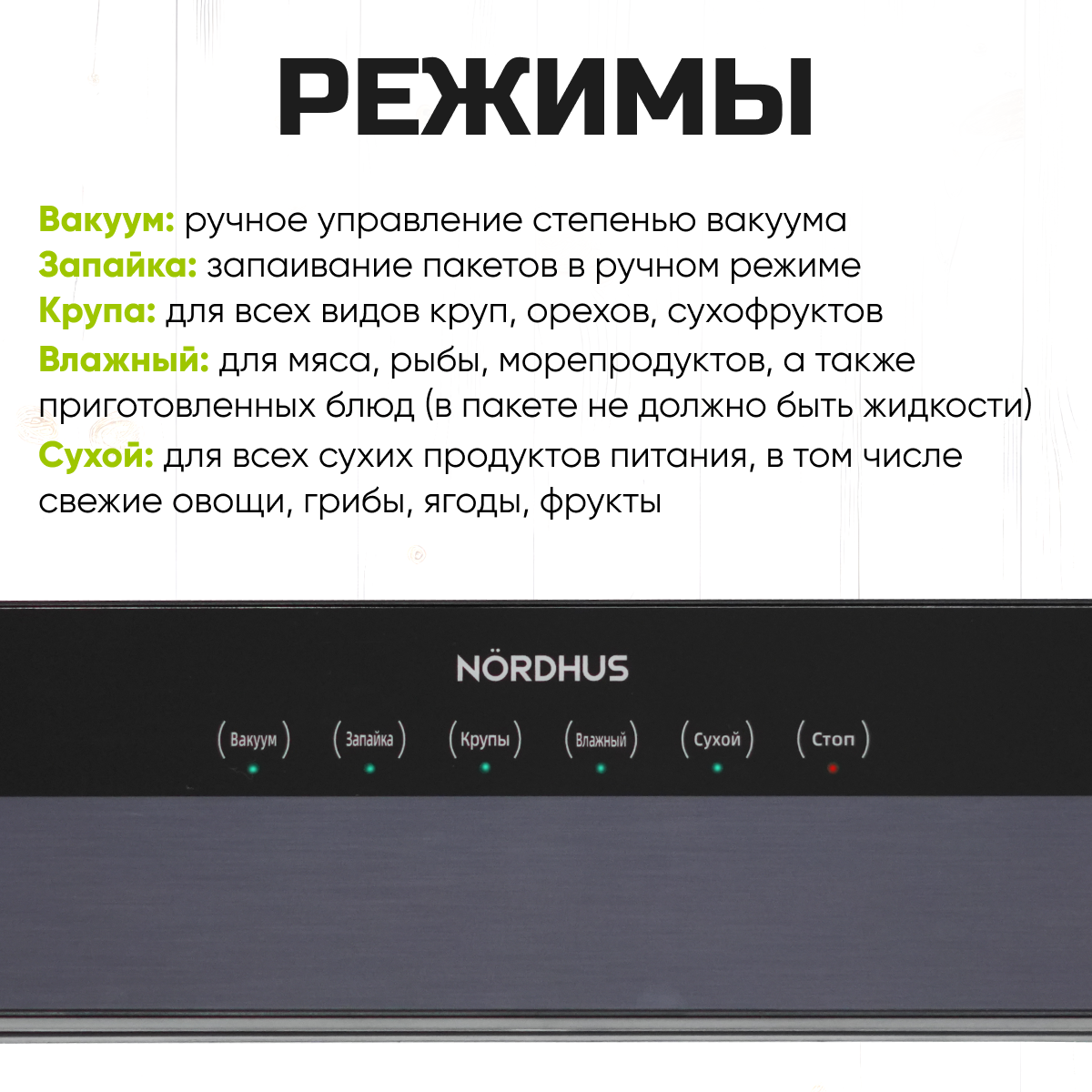 Вакуумный упаковщик Nordhus 120Вт черный + 30 пакетов в подарок интересное: