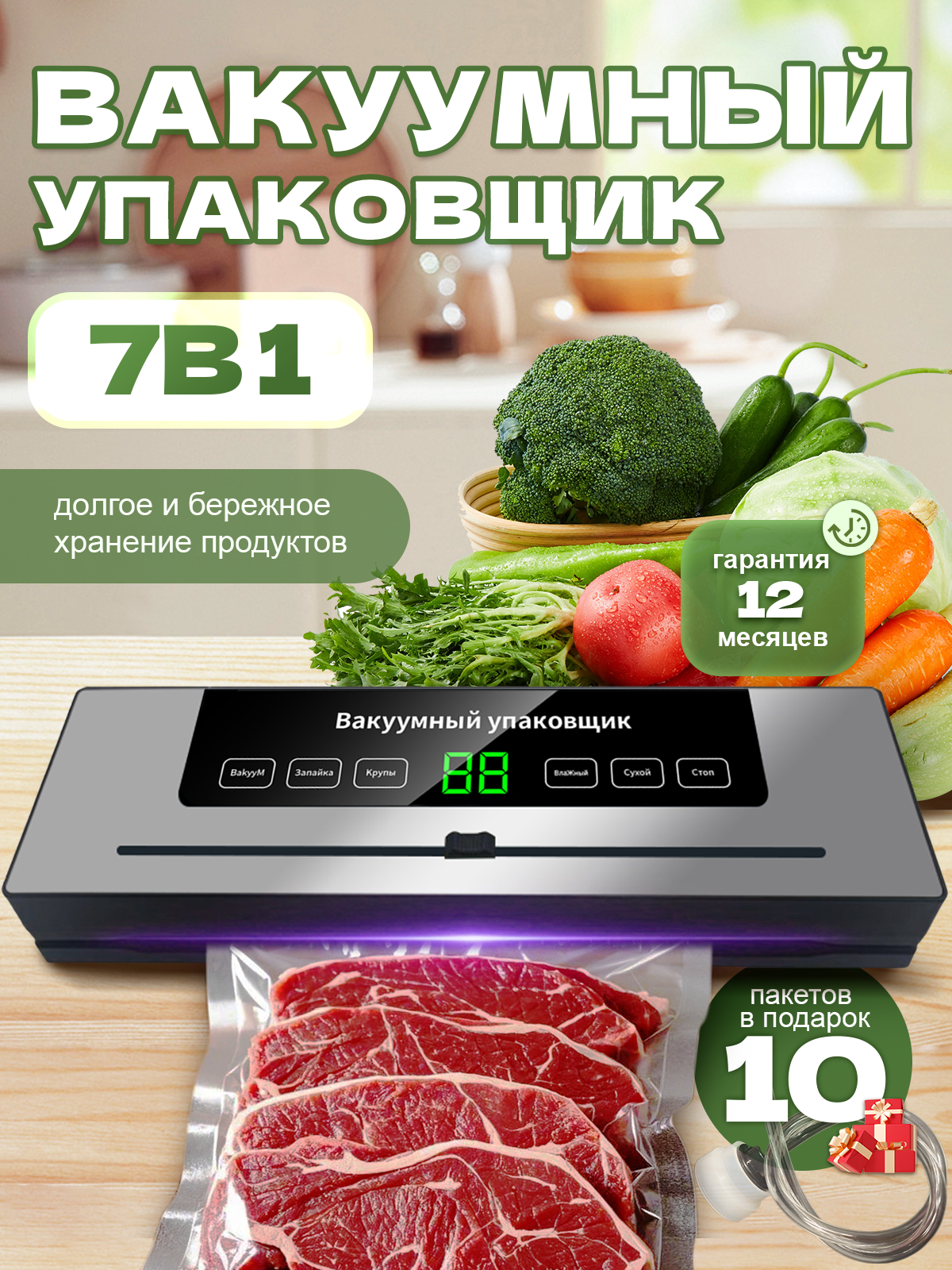 Ниже Вы можете прочитать отзывы на Вакууматор для продуктов, Vacuum Sealer, вакуумный упаковщик мощный с резаком +10 пакетов, ознакомится с подробными характеристиками, посмотреть интересные обзоры и фотографии на Вакууматор для продуктов, Vacuum Sealer, вакуумный упаковщик мощный с резаком +10 пакетов.