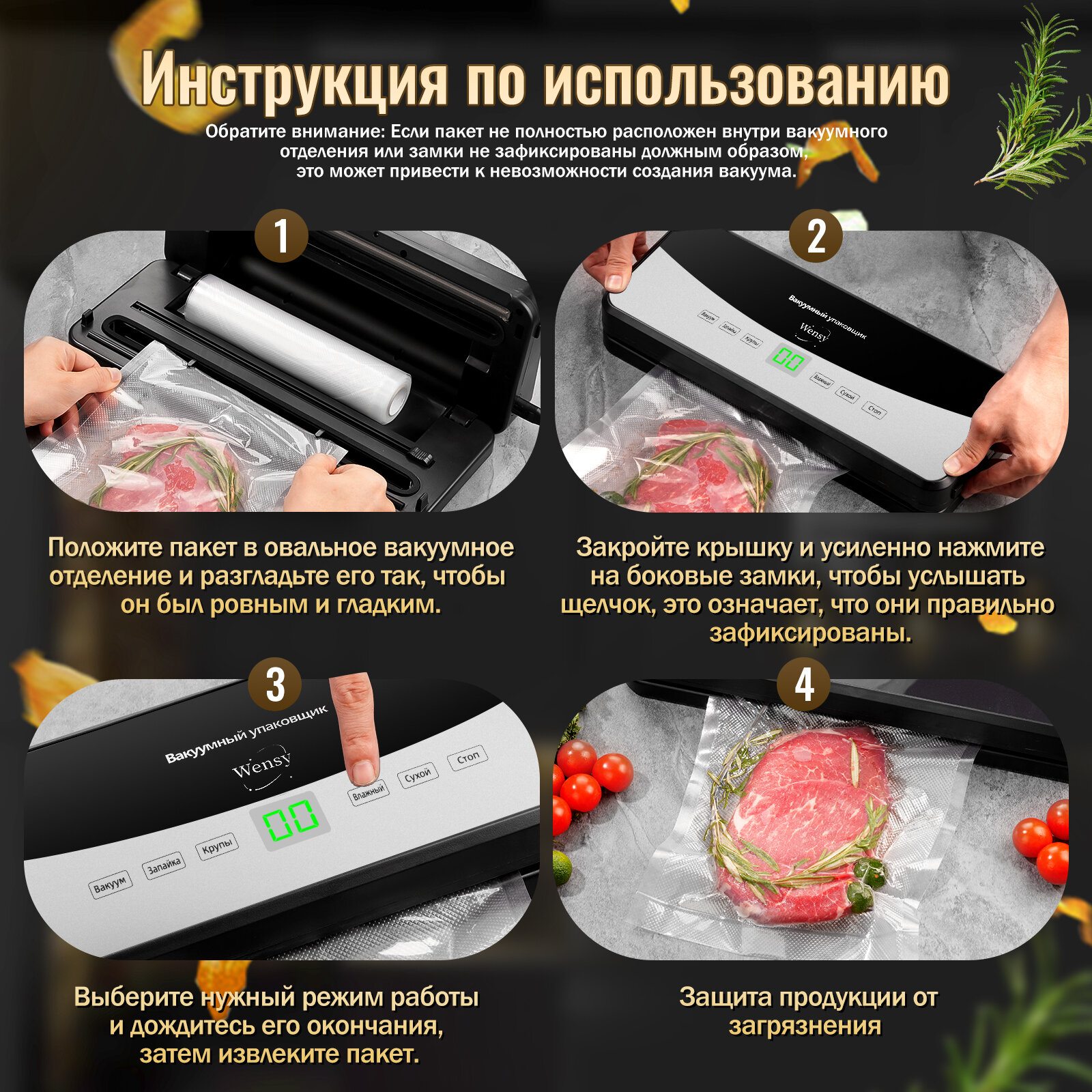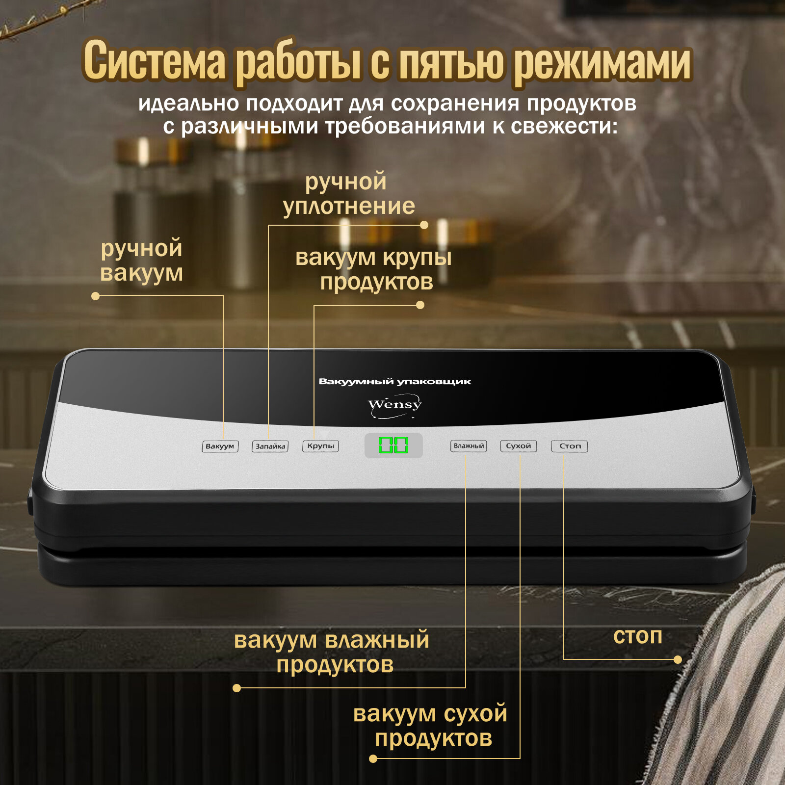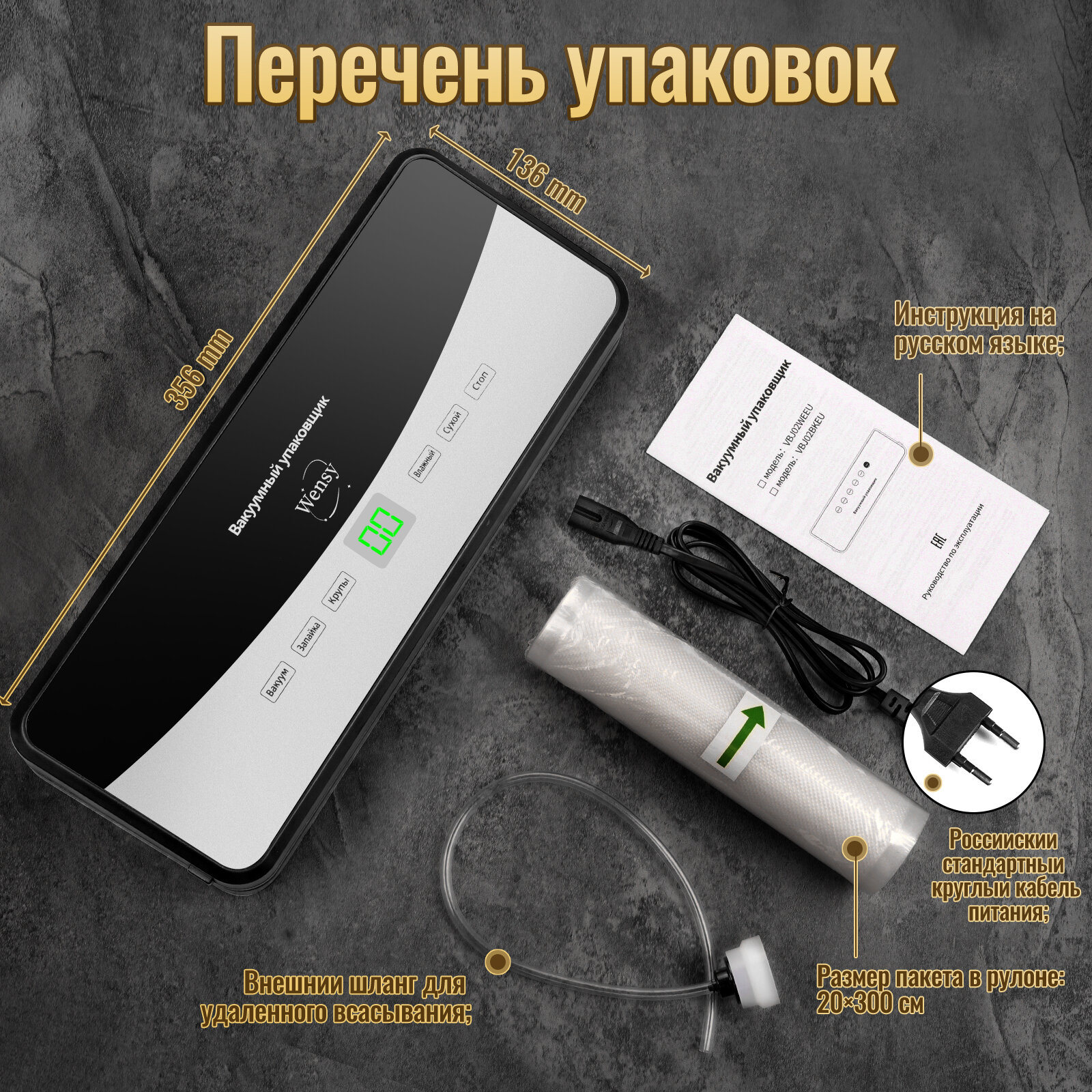 Купить Вакууматор для продуктов Wensy, вакууматор 520, вакуумный упаковщик для продуктов с резаком и рулоном, Серебро