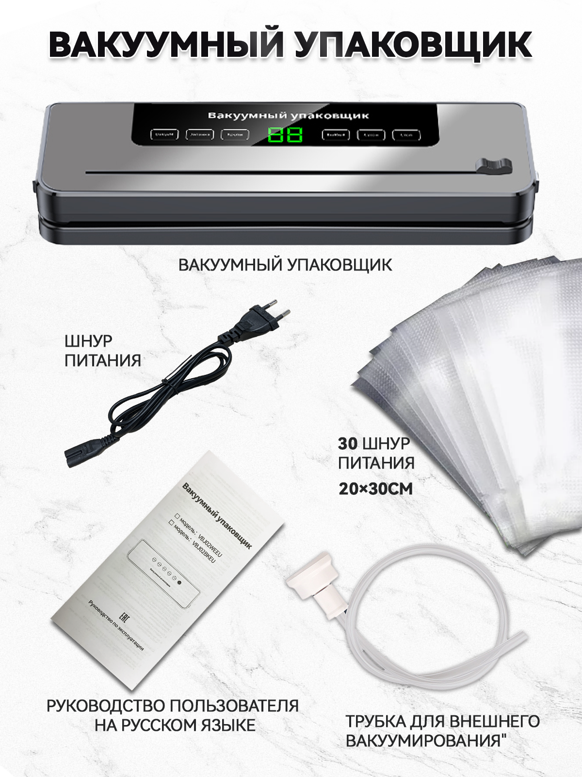Вакууматор для продуктов 65KPA вакуумный упаковщик для вещей с резаком, с 30 пакеты интересное: