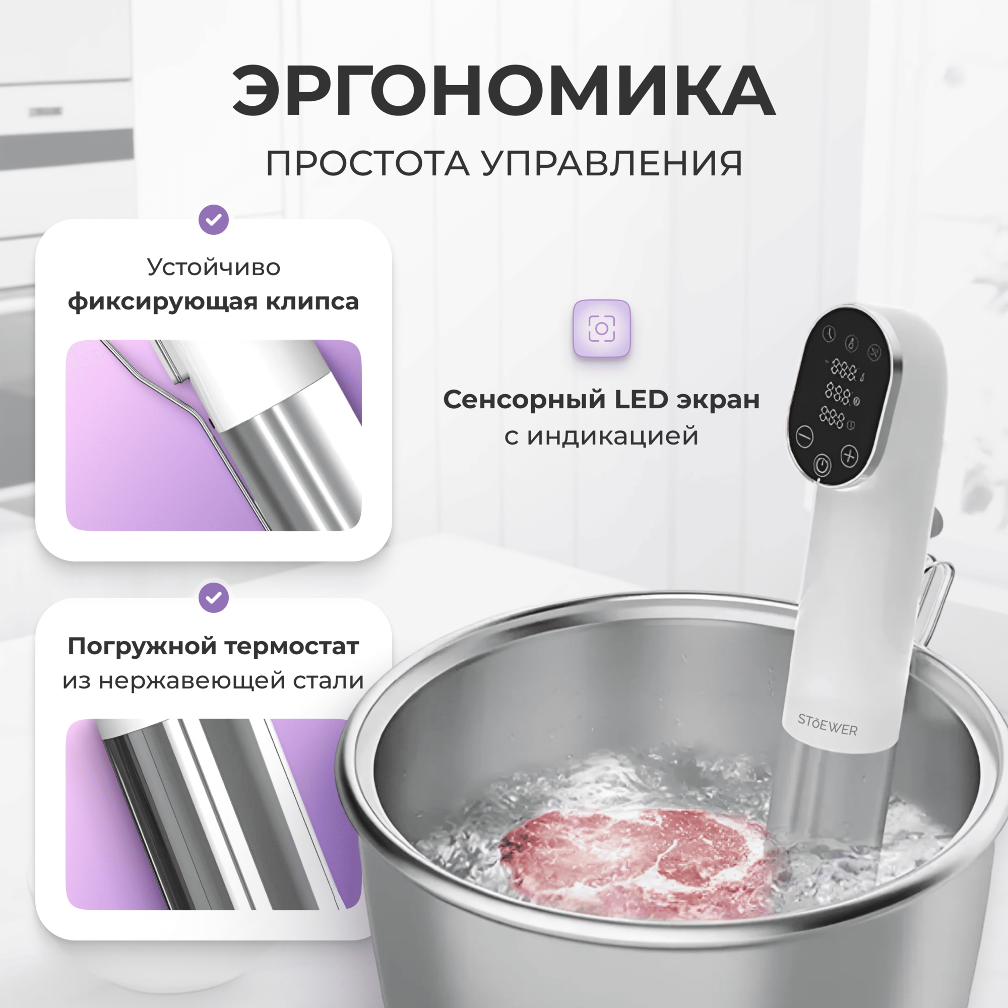 Су-вид STOEWER Штоер Chef SV118 белый, циркуляция воды 360°, мощность 1200 Вт интересное: