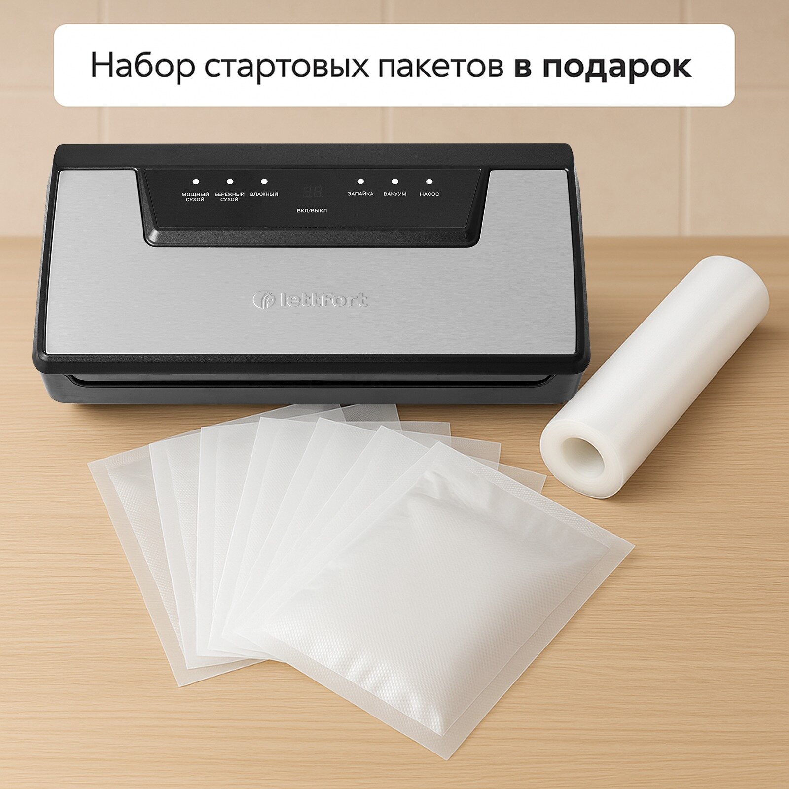 Вакуумный упаковщик для продуктов 130Вт, рулон и пакеты в подарок, черно-стальной интересное: