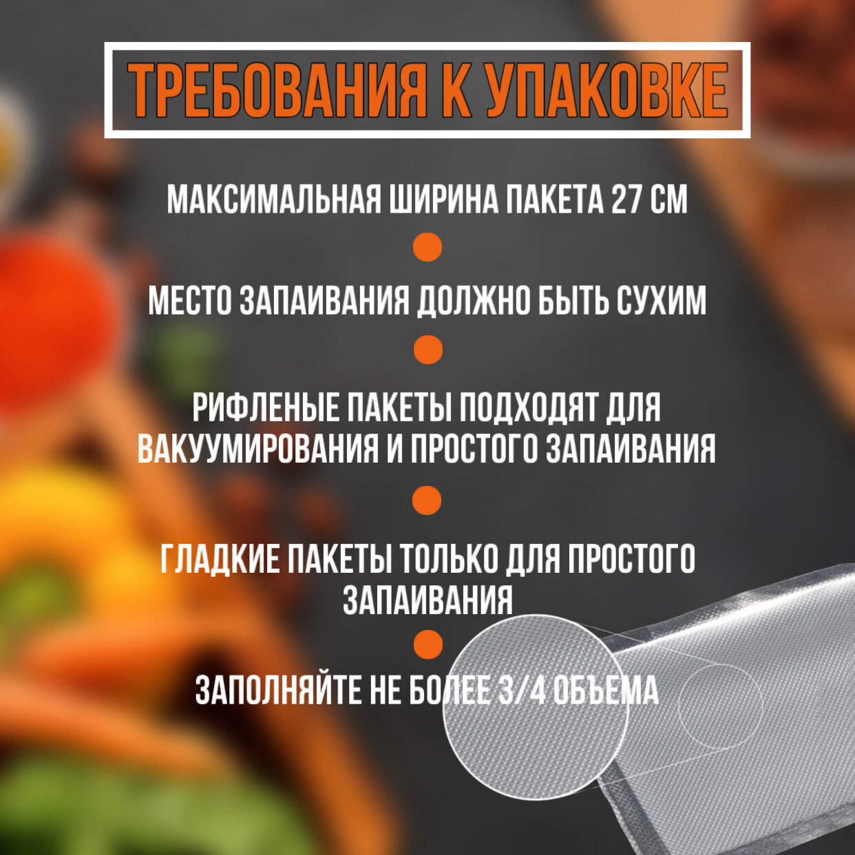 | Дополнительная информация | подходит для заморозки, приготовления су-вид, для маринования, вакуумирования, обычного запаивания |