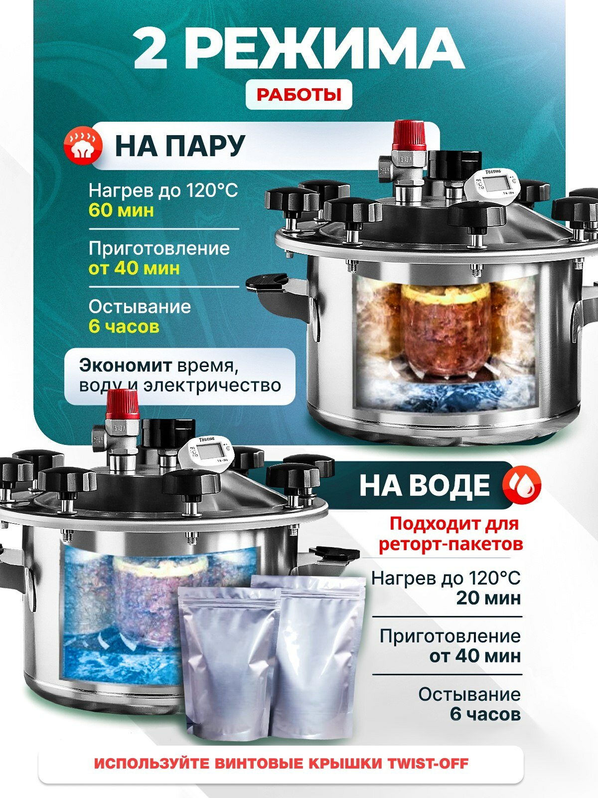 Автоклав Малиновка 4 для домашнего консервирования 20л