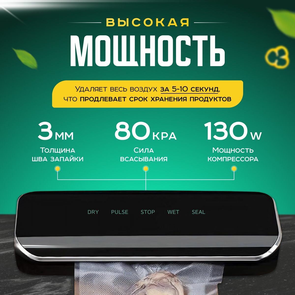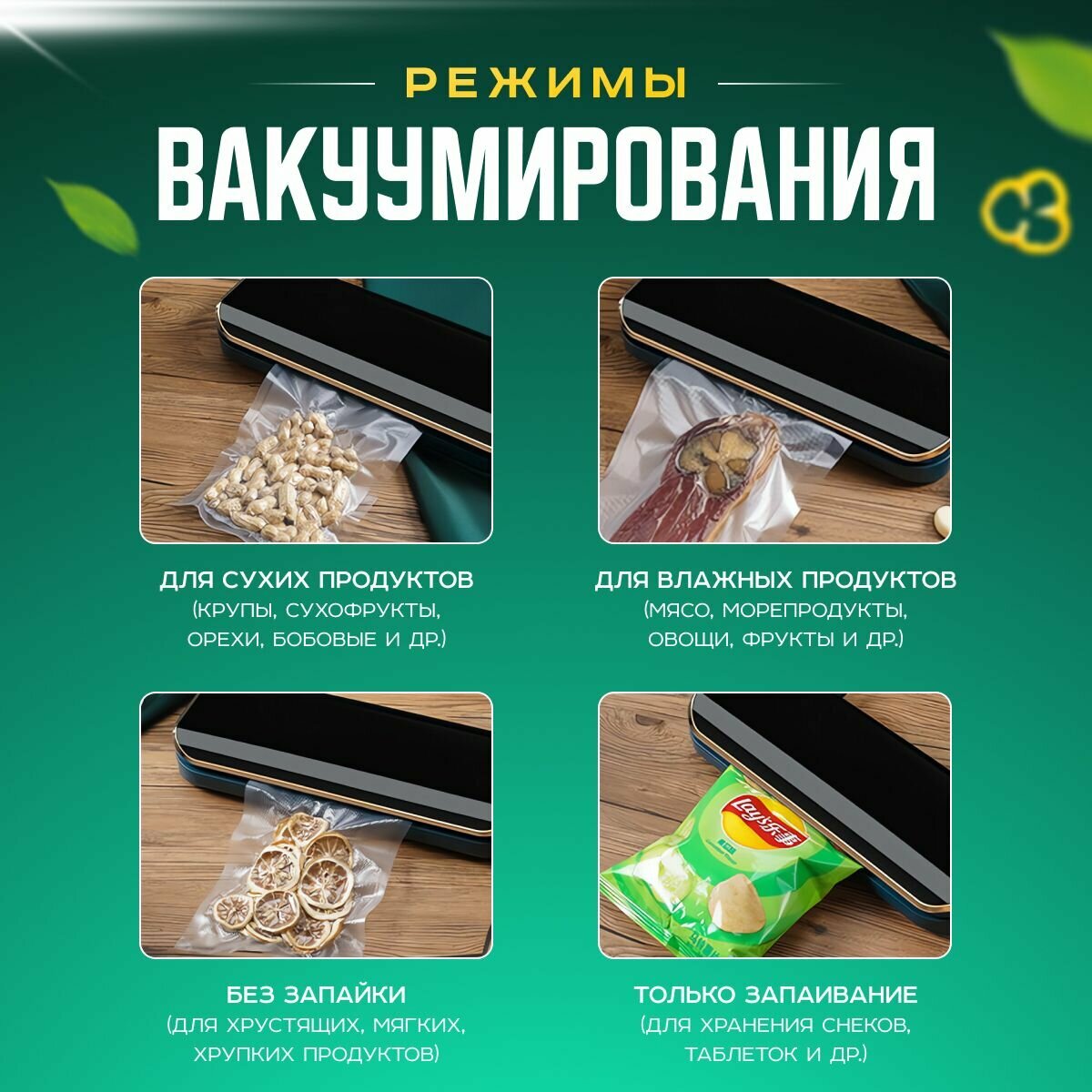 Вакууматор для продуктов, вакуумный упаковщик, запаиватель пакетов бытовая техника для кухни, зеленый