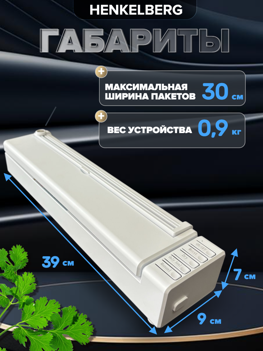 Вакуумный упаковщик HENKELBERG с питанием от аккумулятора, 10 пакетов, резак, запайщик, 5 режимов работы, внешнее вакуумирование интересное: