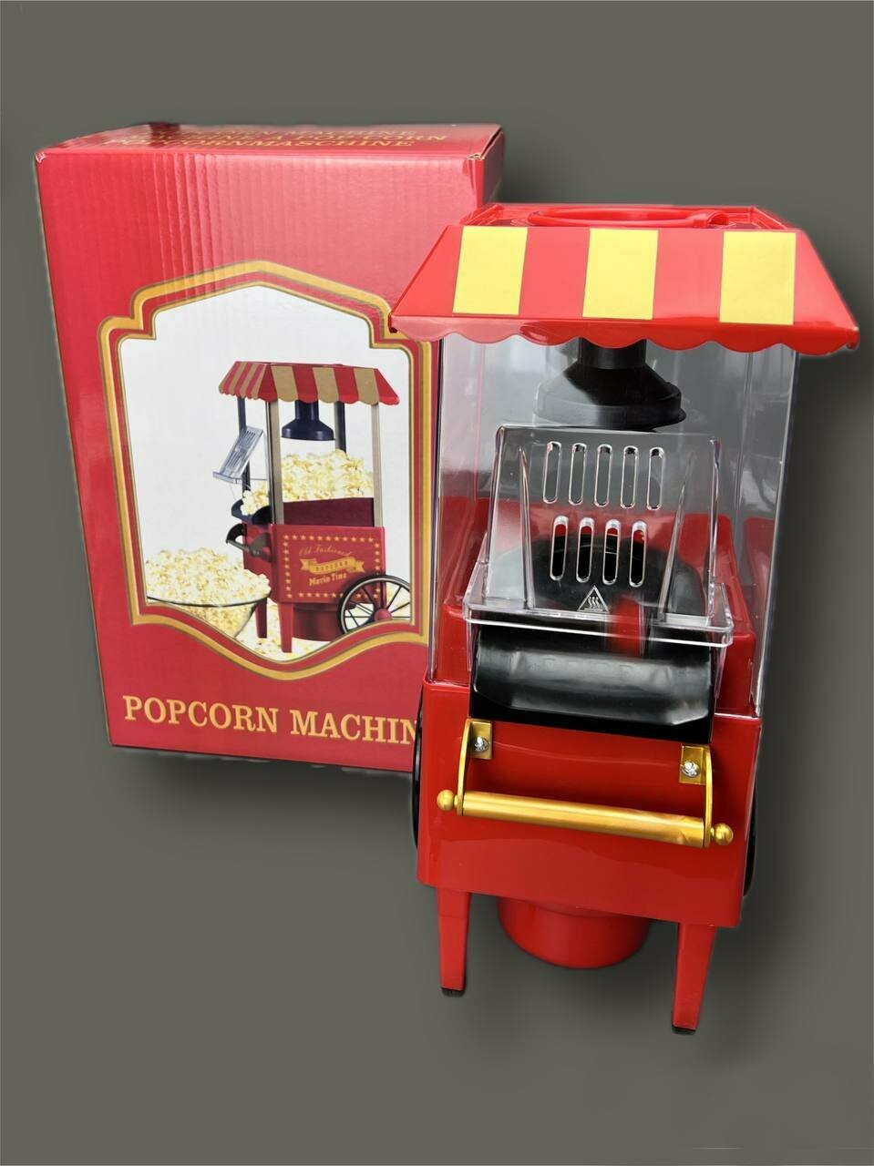 Аппарат для приготовления попкорна домашний, 1200Вт, пластик, 18x40x24 см, красный интересное:
