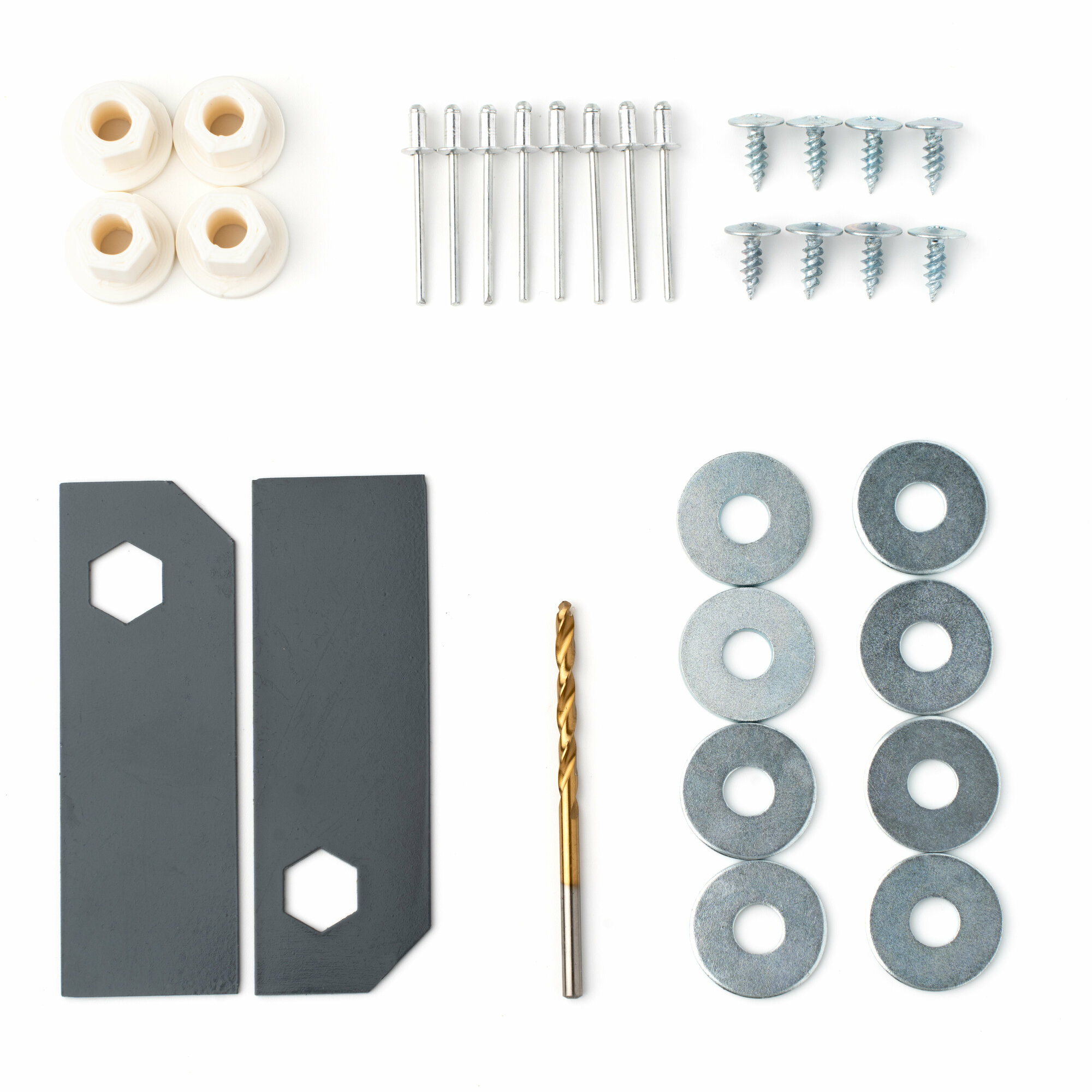 | Подробная комплектация | Комплектация: Втулка холодильной двери - 4шт Пластина, усиление нижнего основания двери - 2шт Клепки - 8шт Саморез - 8шт Шайба увеличенная - 8шт Сверло по металлу - 1шт |