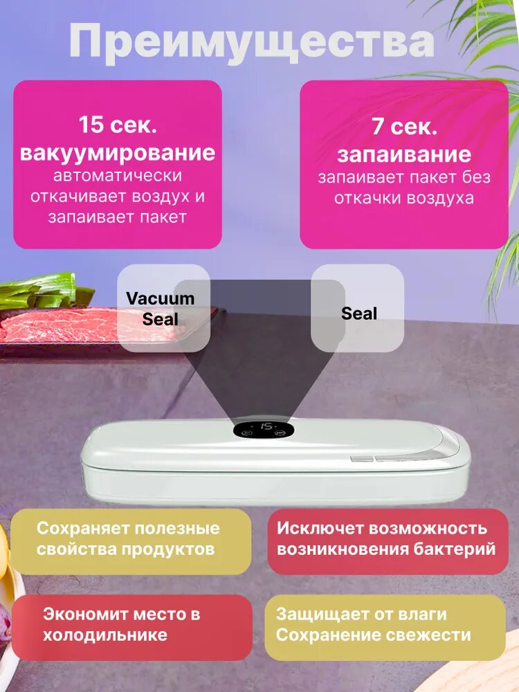 Вакуумный упаковщик для продуктов, вакууматор, запайщик пакетов для кухни интересное: