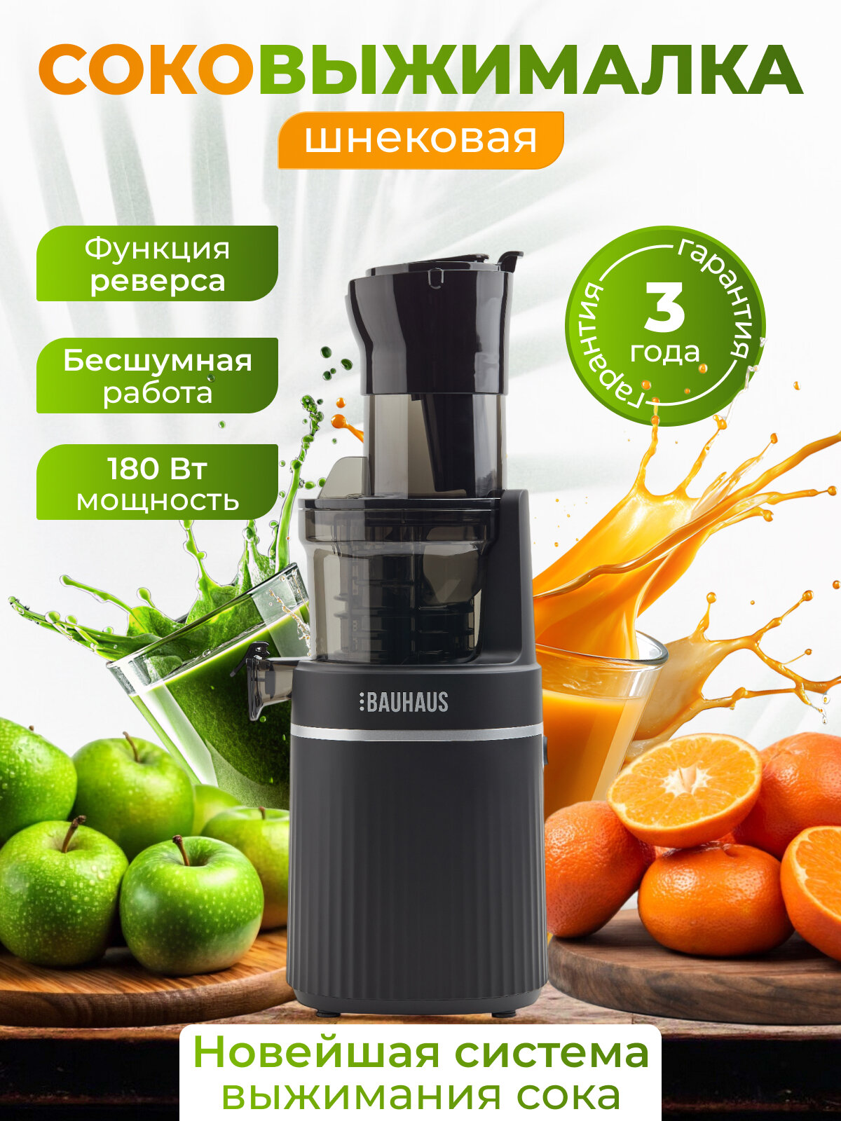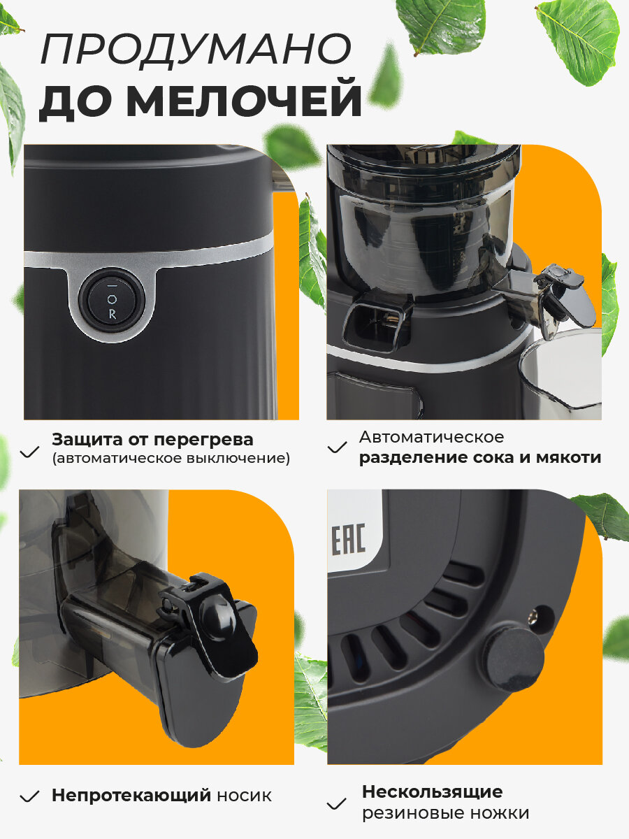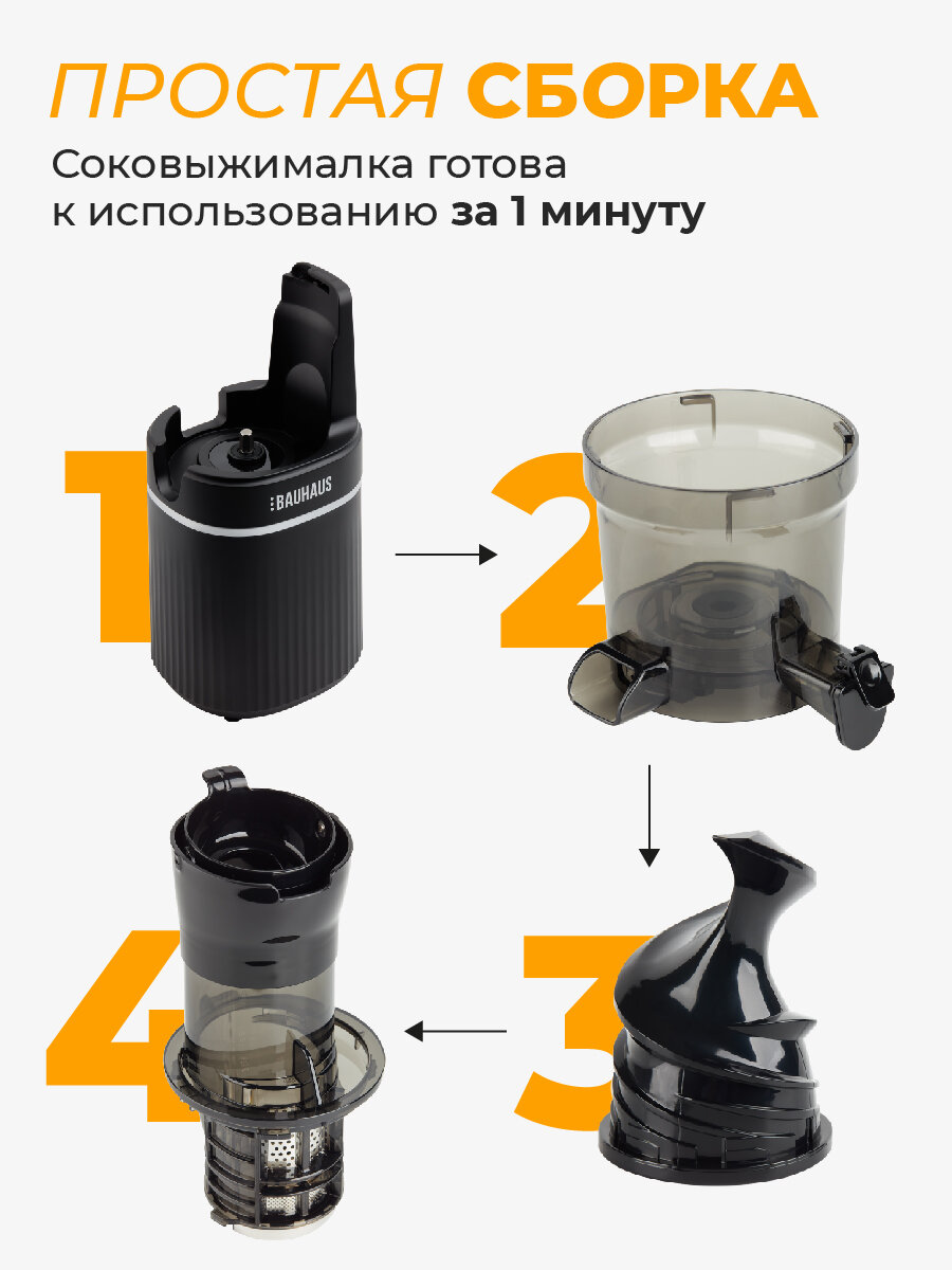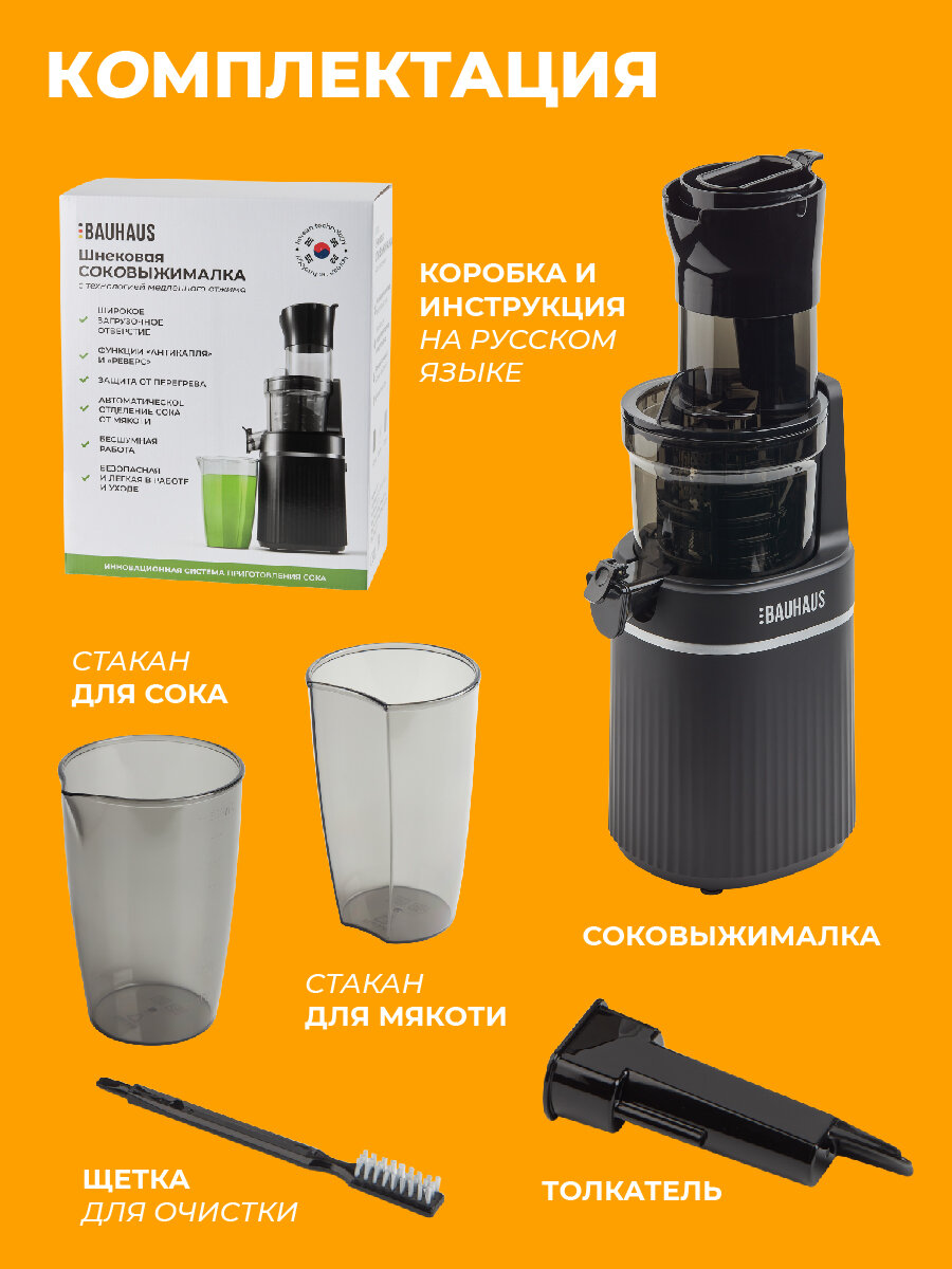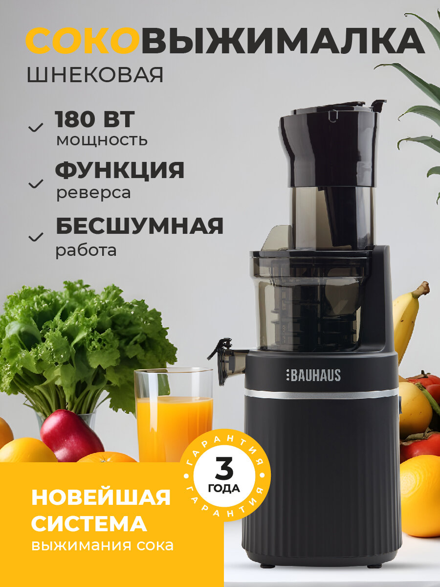 Соковыжималка шнековая BAUHAUS, цвет черный, емкость стакана 800мл интересное: