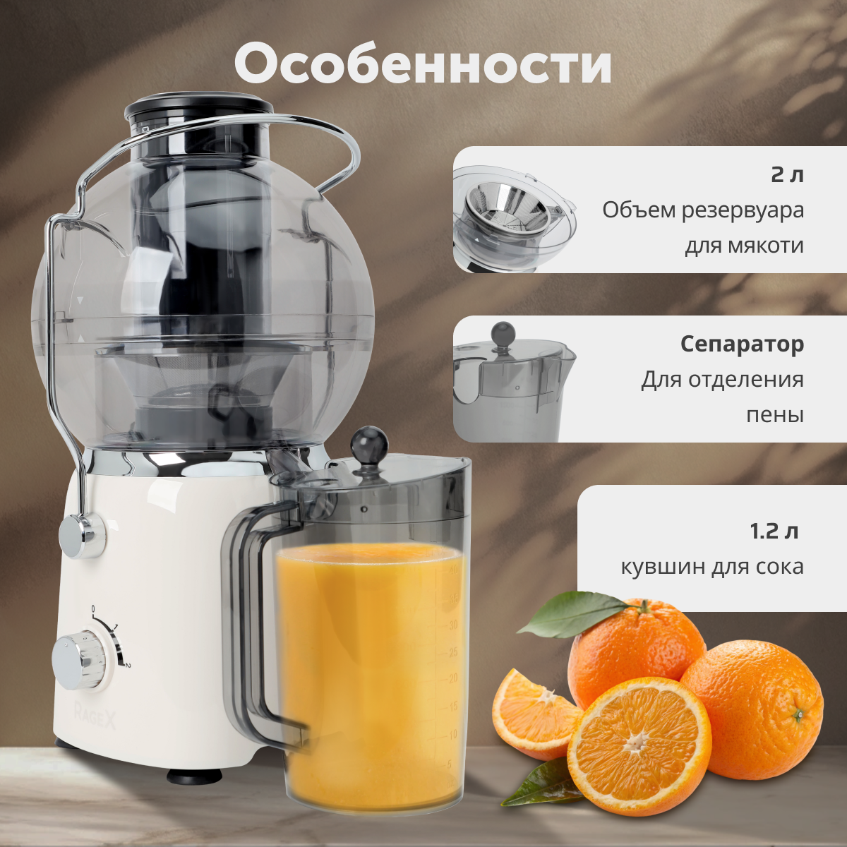 | Особенности | подходит для мелких и крупных цитрусовых |