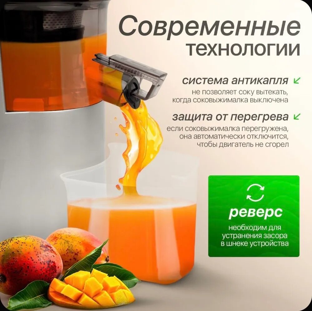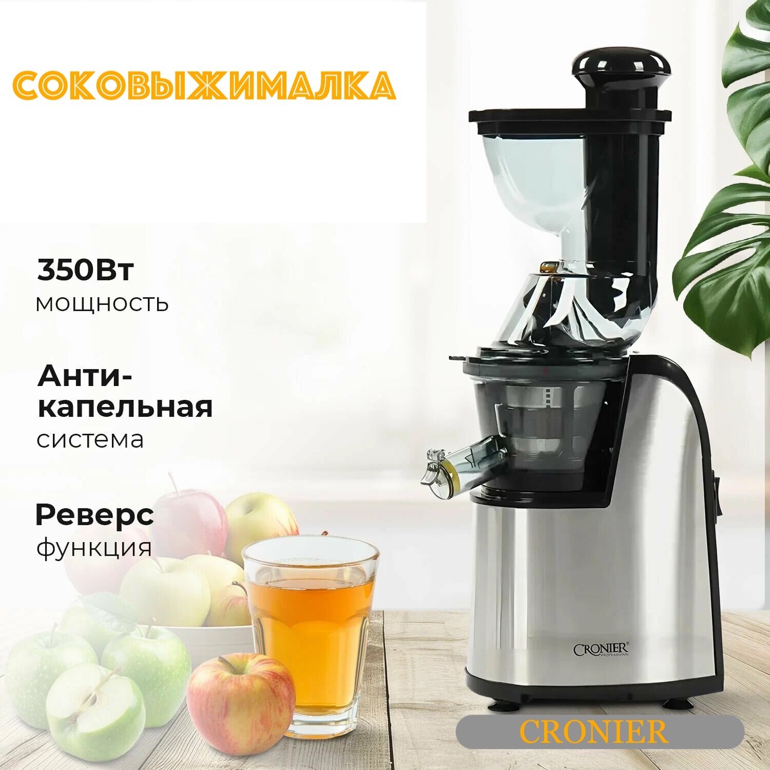 Соковыжималка шнековая Cronier, 350Вт, нержавеющая сталь, круглая горловина интересное: