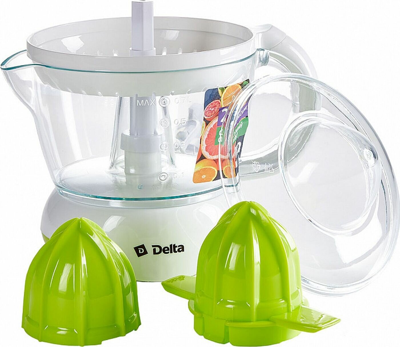 Купить Соковыжималка Delta DL-0234 электрическая, 700 мл, 25 Вт, белая с зеленым