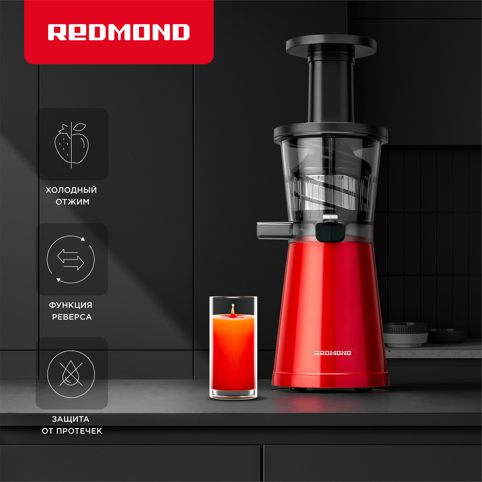 Соковыжималка шнековая РЕДМОНД J1403, холодный отжим, функция реверса, резервуар 600 мл интересное: