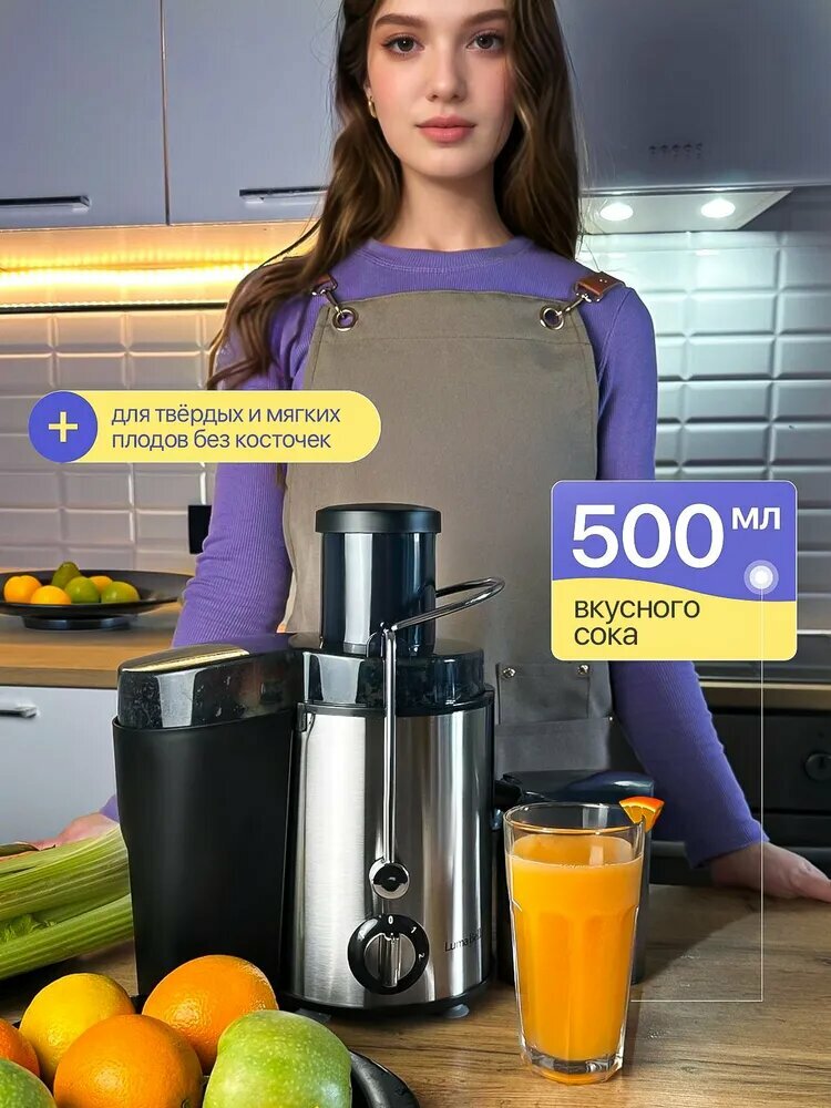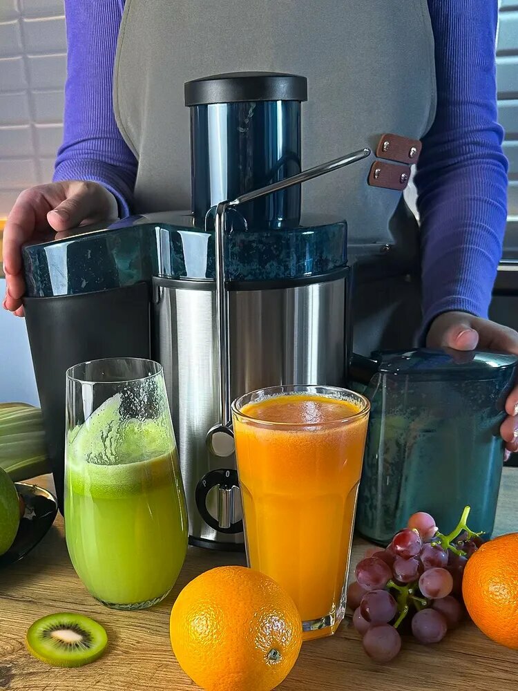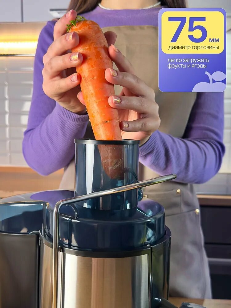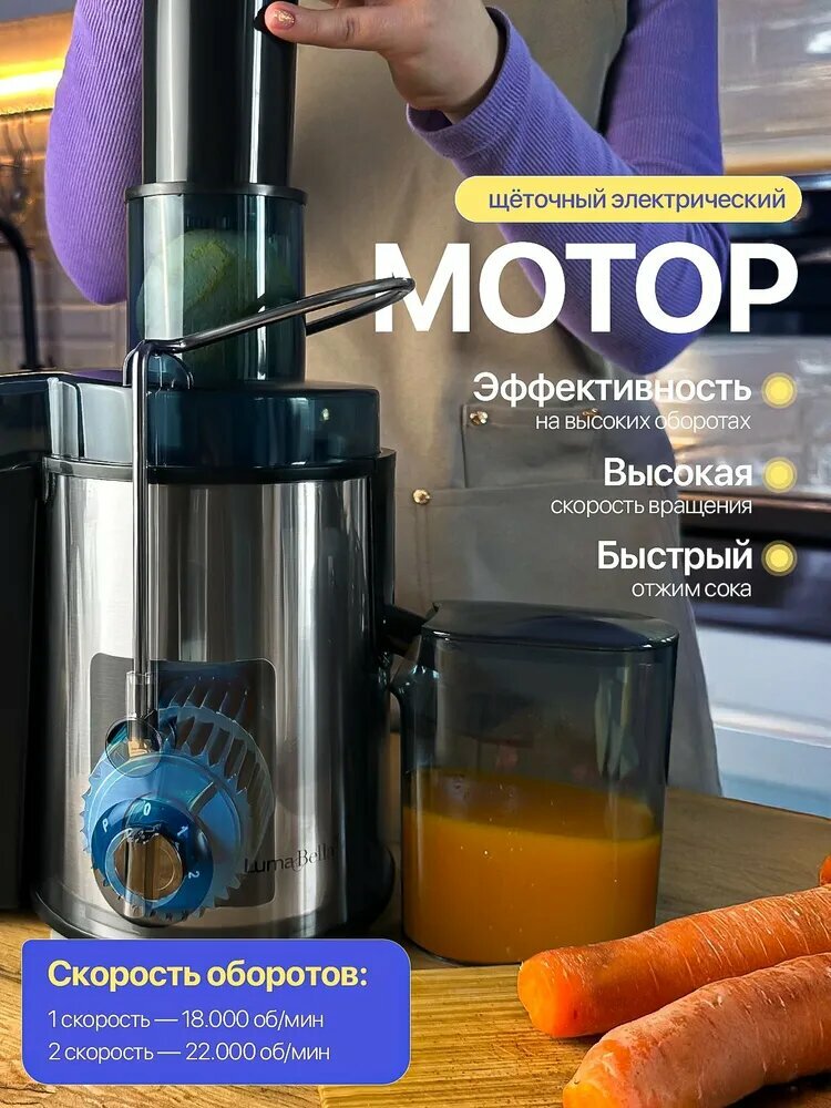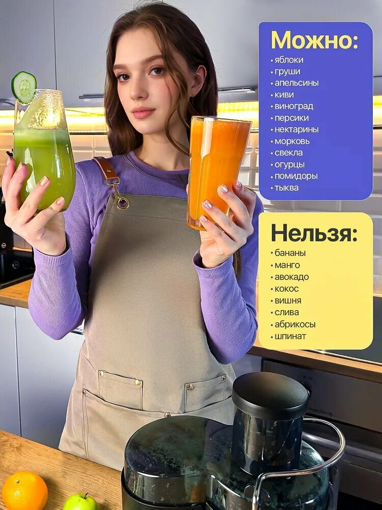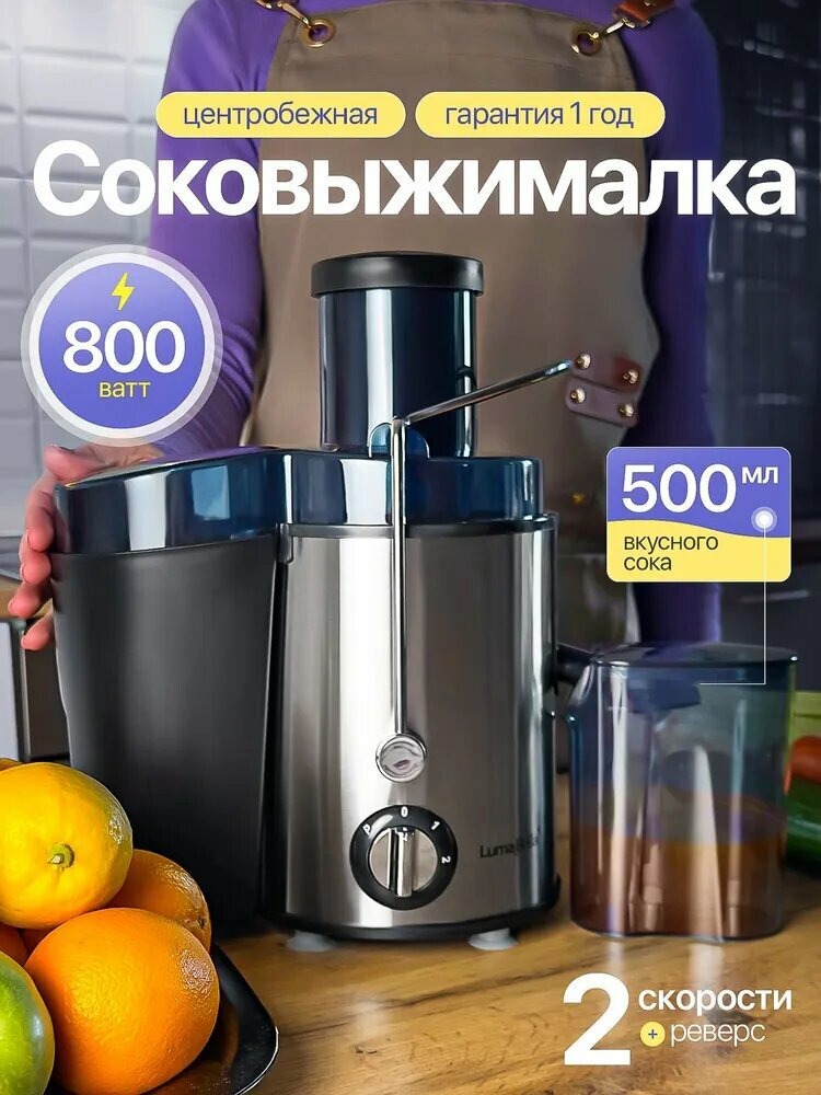 Соковыжималка электрическая центробежная для овощей и фруктов; 22000 об/мин; 800 Вт; 2 режима скорости интересное:
