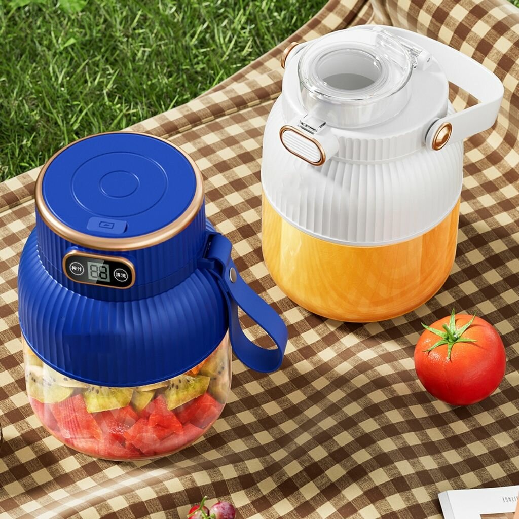 Купить Электрическая соковыжималка на 600 мл-голубая-двойная чашка и двойная крышка