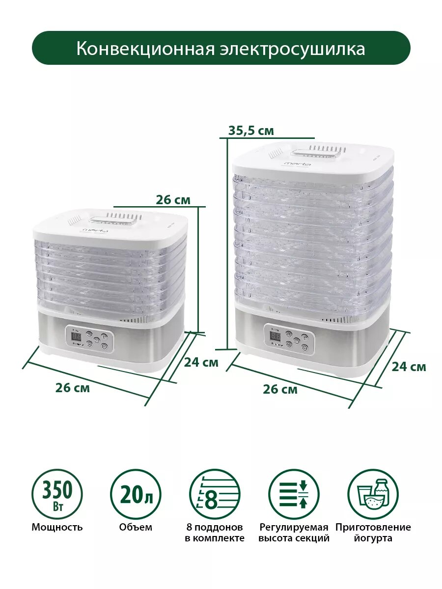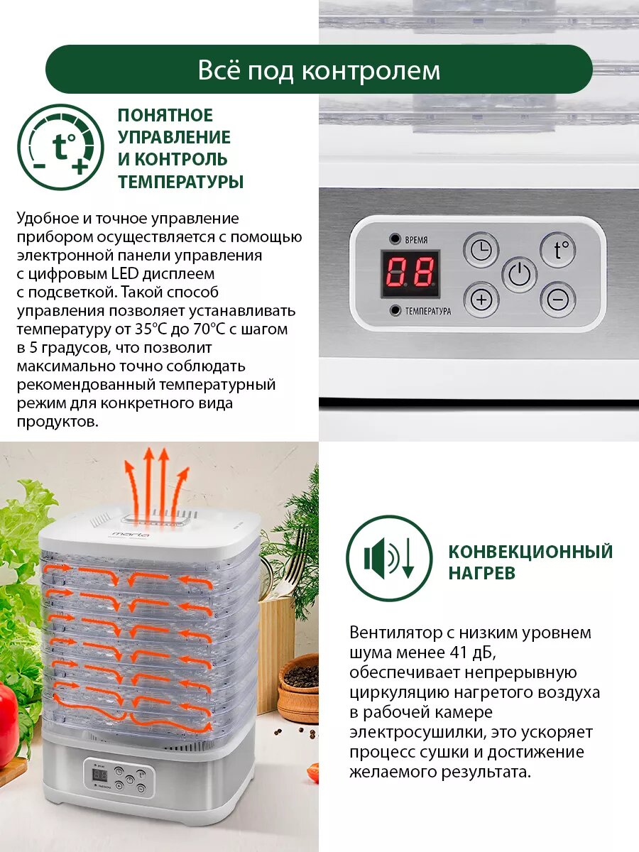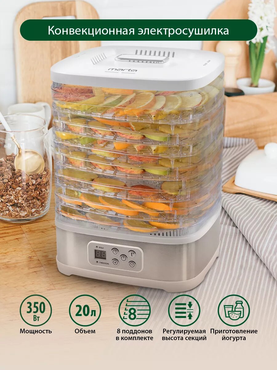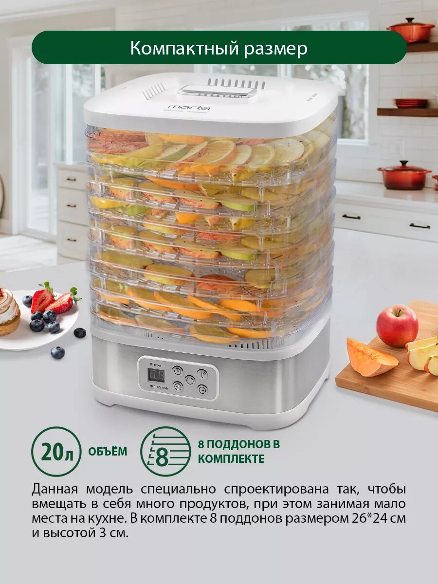 Дегидратор сушилка для овощей электросушилка MARTA MT-1875 8 поддонов белый жемчуг интересное: