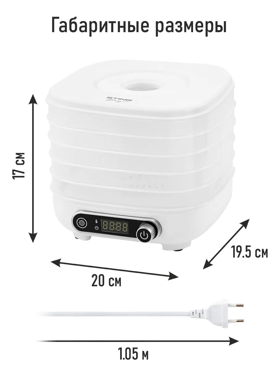 Дегидратор сушилка для овощей электросушилка STINGRAY ST-FD713A 5 поддонов белый интересное: