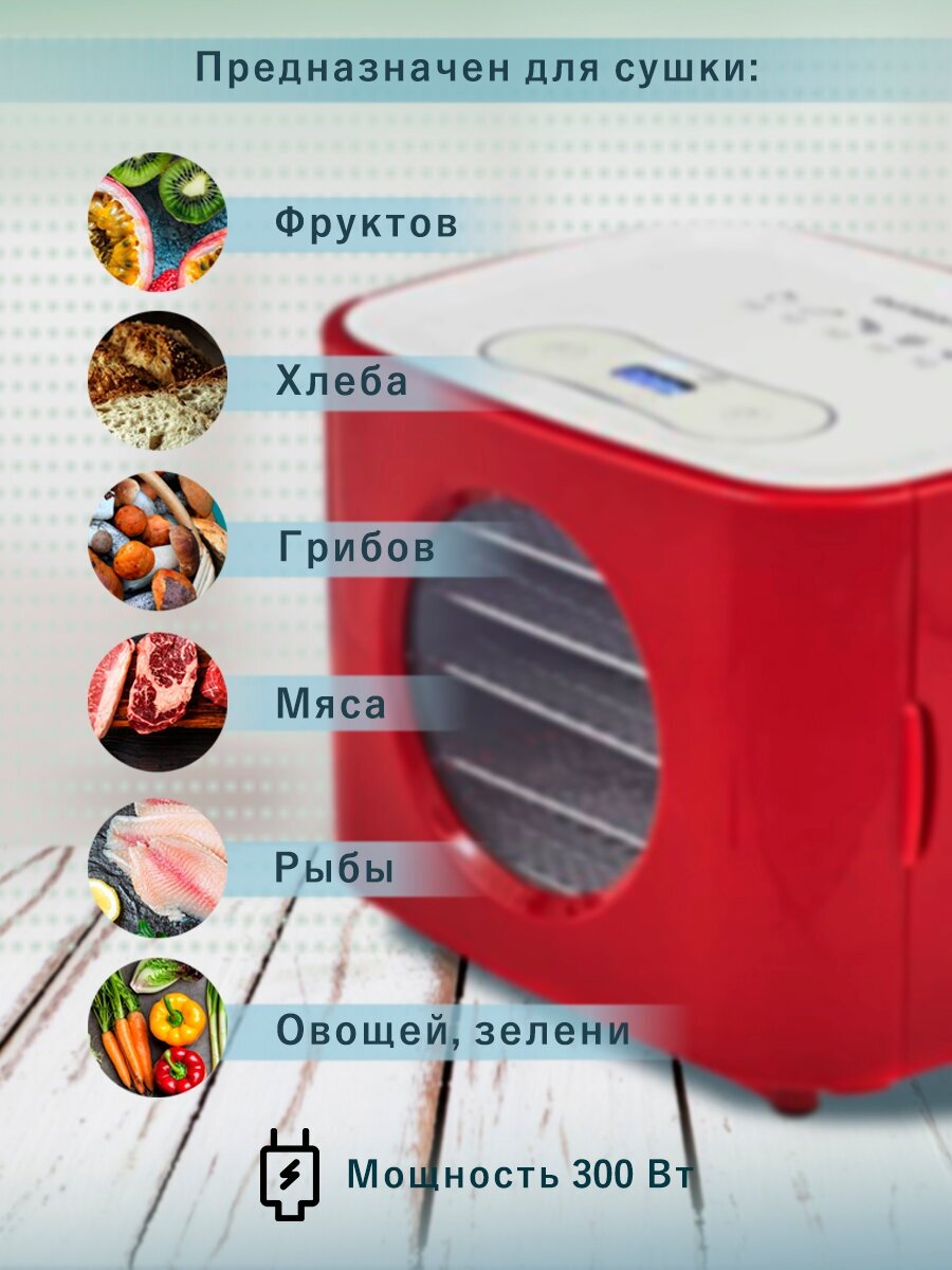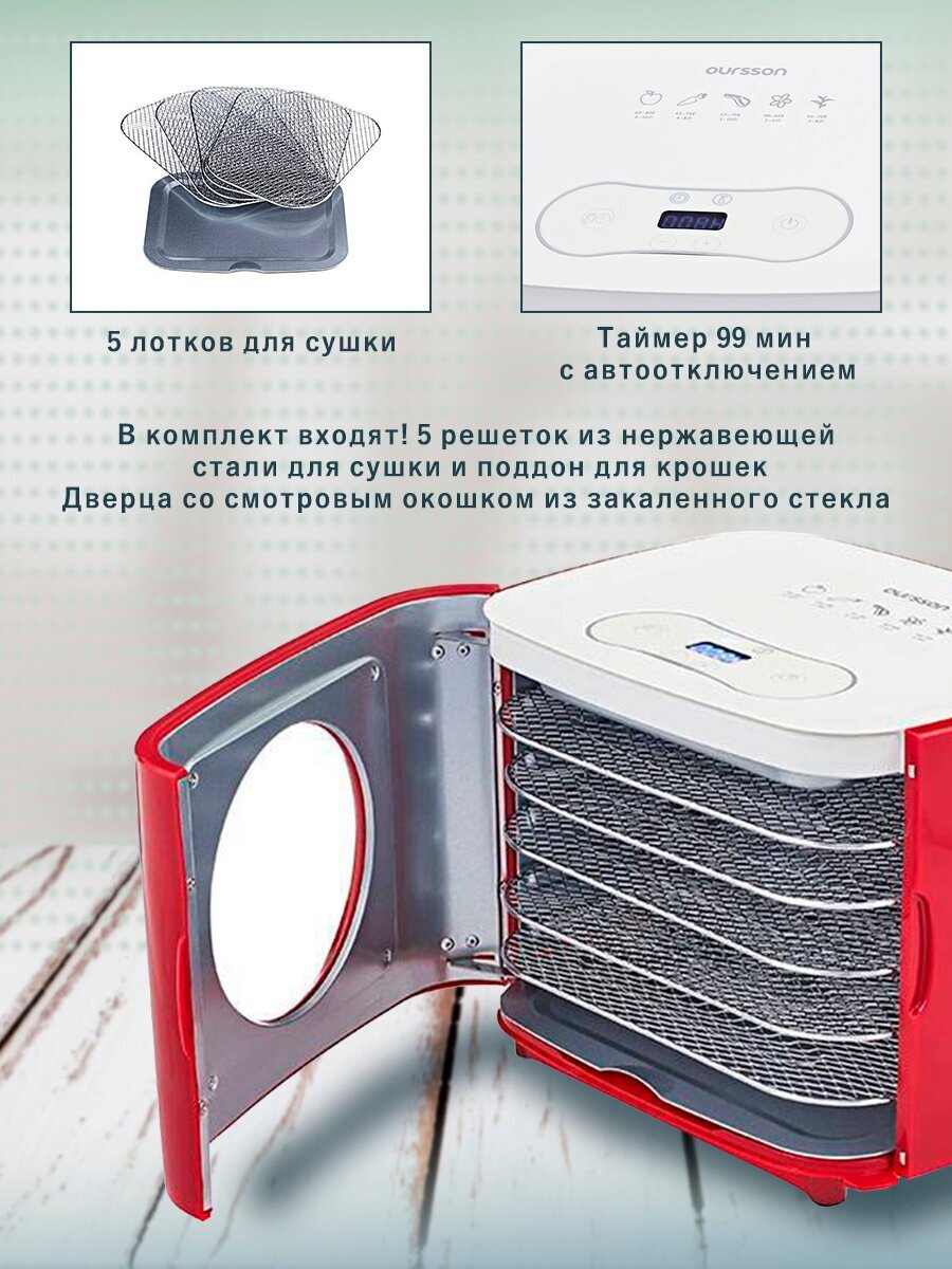 Дегидратор конвективный Oursson DR5000D/RD красный, 5 поддонов, электронное управление интересное: