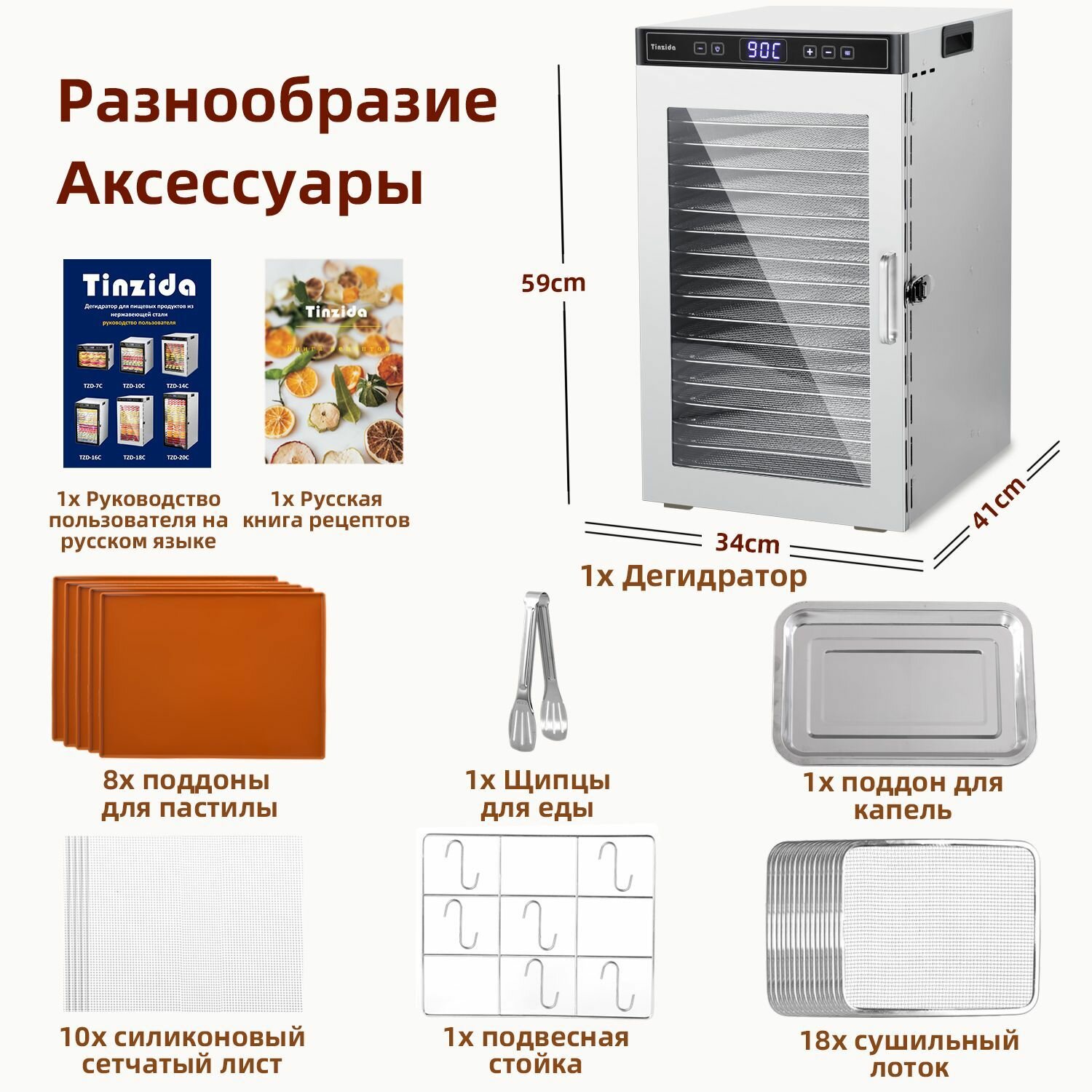 Сушилка для овощей фруктов и мяса TINZIDA Дегидратор 18 лотков интересное: