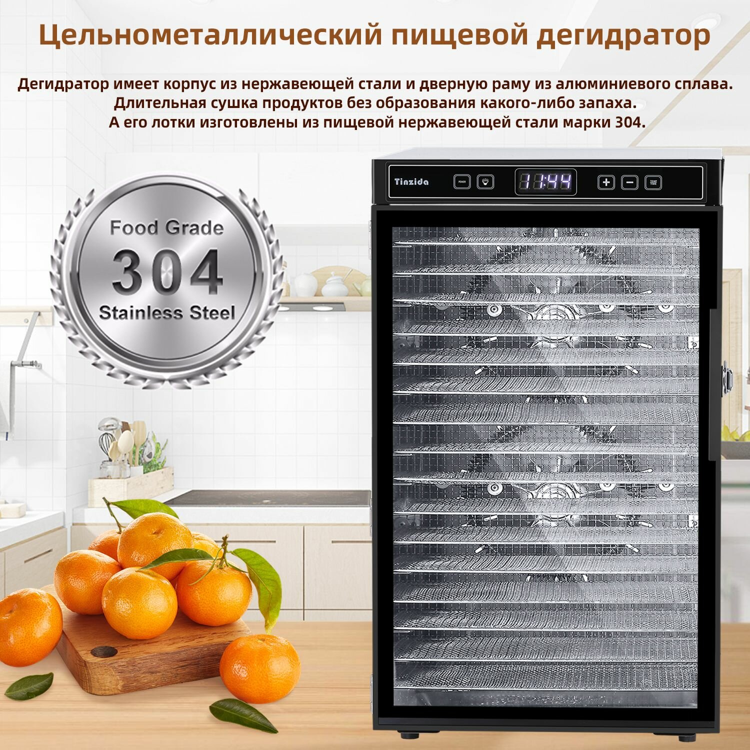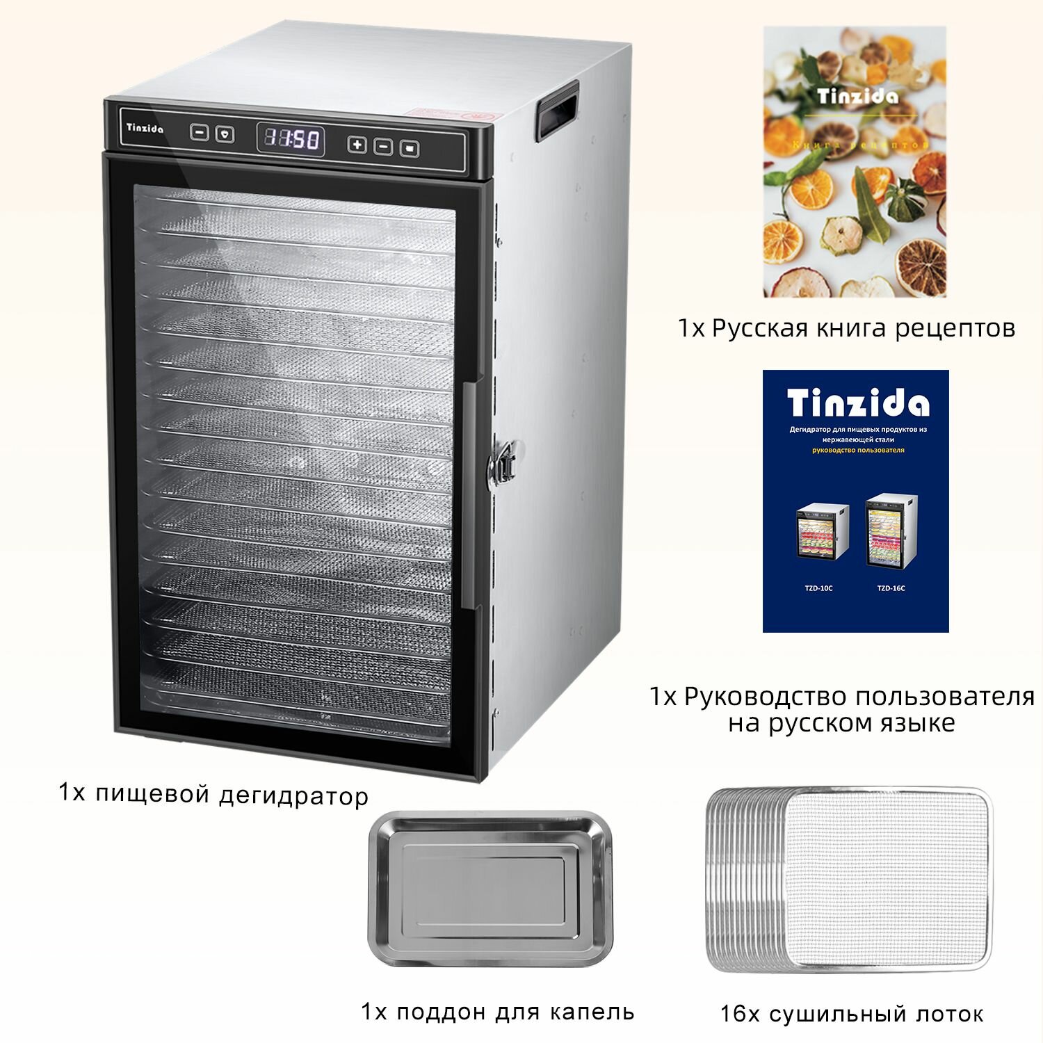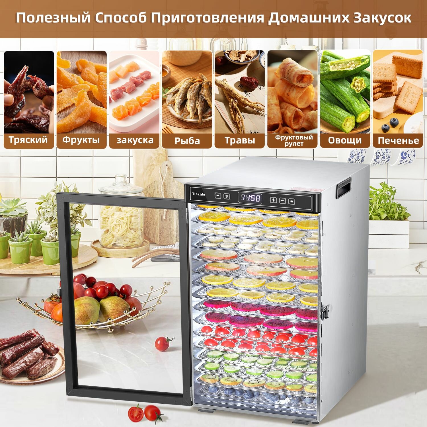 Сушилка для овощей, фруктов и мяса Tinzida Дегидратор 16 поддонов интересное: